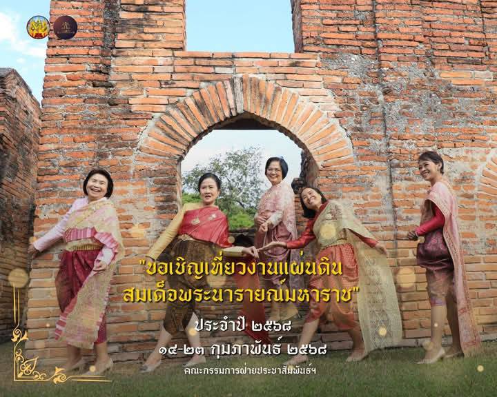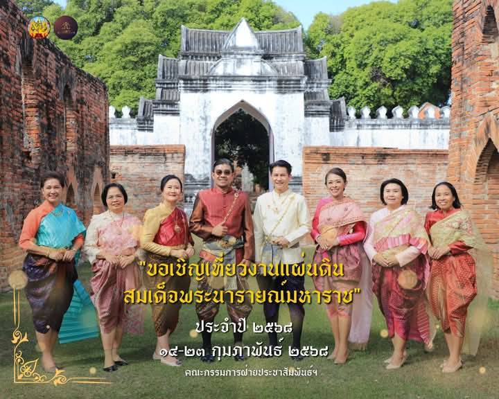ร่วมสัมผัสความเป็นไทย ในงานประเพณีสุดยิ่งใหญ่แห่งปี “งานแผ่นดินสมเด็จพระนารายณ์มหาราช“ ครั้งที่ 37 ประจำปี 2568 ระหว่างวันที่ 14-23 กุมภาพันธ์ 2568 ณ พระนารายณ์ราชนิเวศน์ อำเภอเมืองลพบุรี จังหวัดลพบุรี และโบราณสถานต่างๆ ในบริเวณใกล้เคียง