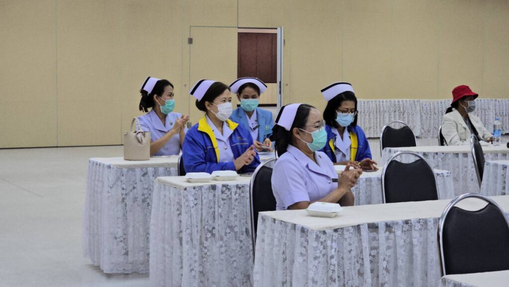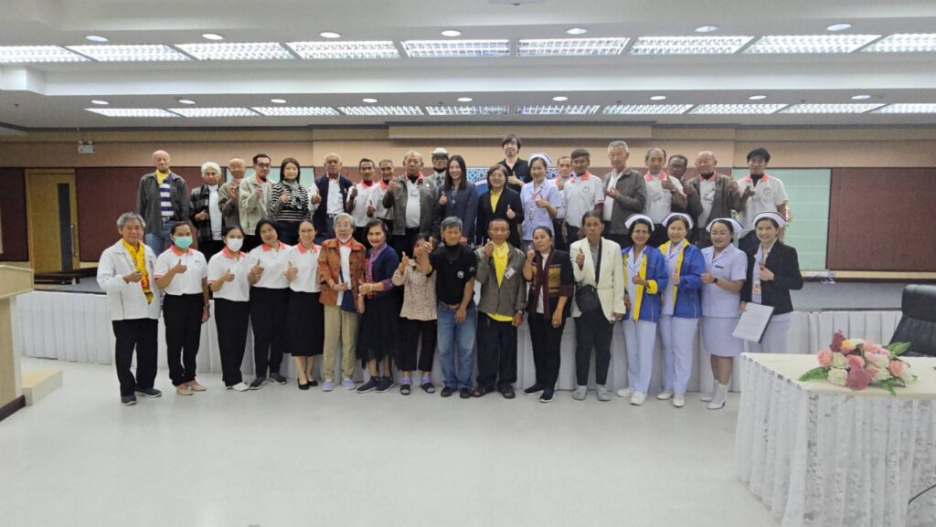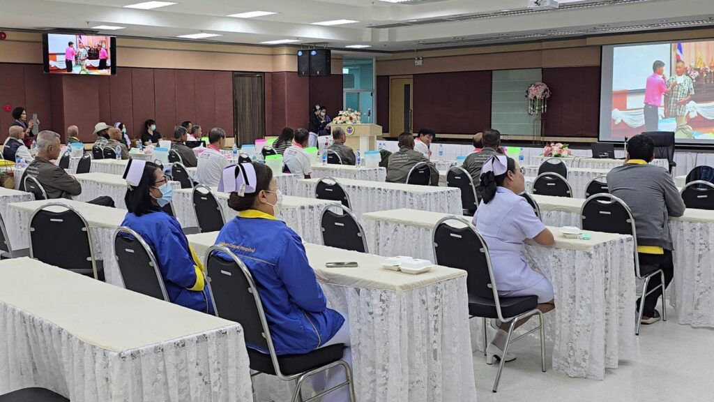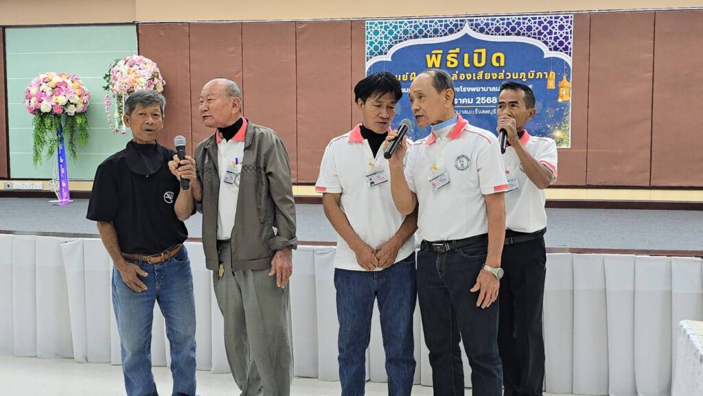 แพทย์หญิง อรุณี โกวิทพิสิฐสกุล นายแพทย์ชำนาญการพิเศษ โรงพยาบาลมะเร็งลพบุรี พร้อมด้วย นายวันชัย บานแย้ม นายกสมาคมผู้ไร้กล่องเสียงในประเทศไทย พร้อมด้วย ประธานชมรมผู้ไร้กล่องเสียงจากจังหวัดต่างๆ ร่วมกัน ประกอบ พิธีเปิด “ศูนย์ฝึกผู้ไร้กล่องเสียงส่วนภูมิภาค” ณ อาคารผู้ป่วยนอก 6 ชั้น โรงพยาบาลมะเร็งลพบุรี โดยมีเครือข่าย สมาชิกผู้ไร้กล่องเสียงจากทั่วประเทศ กว่า 50 คน เข้าร่วมในพิธี