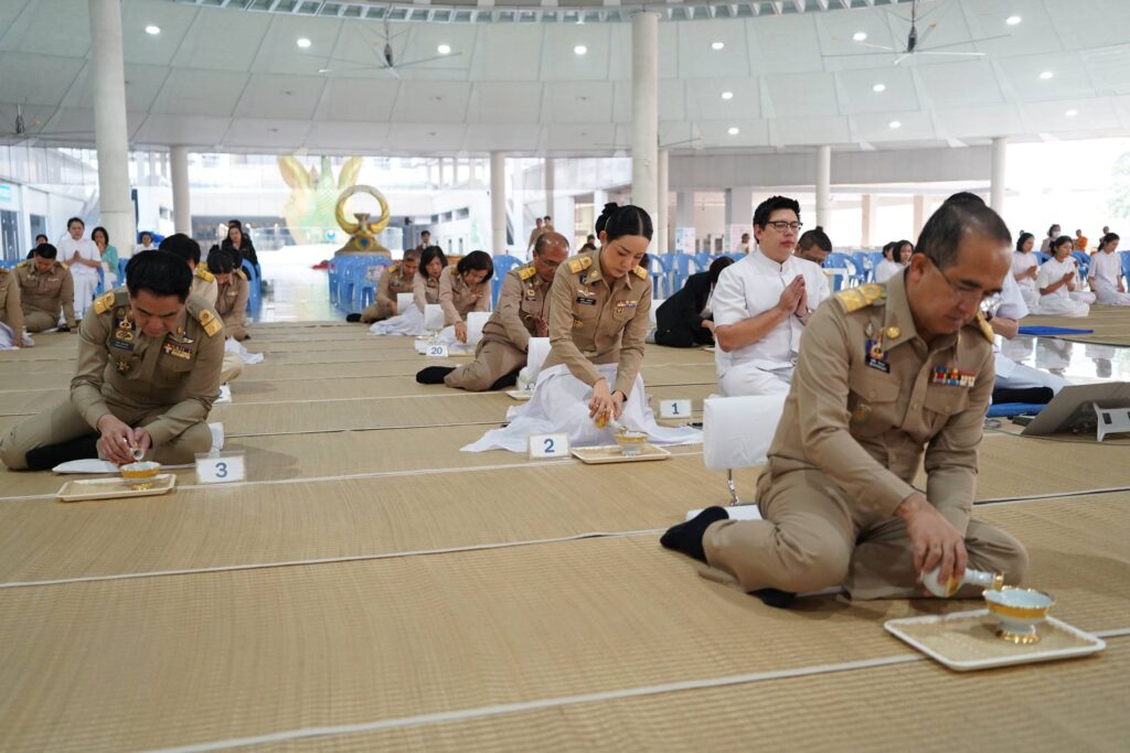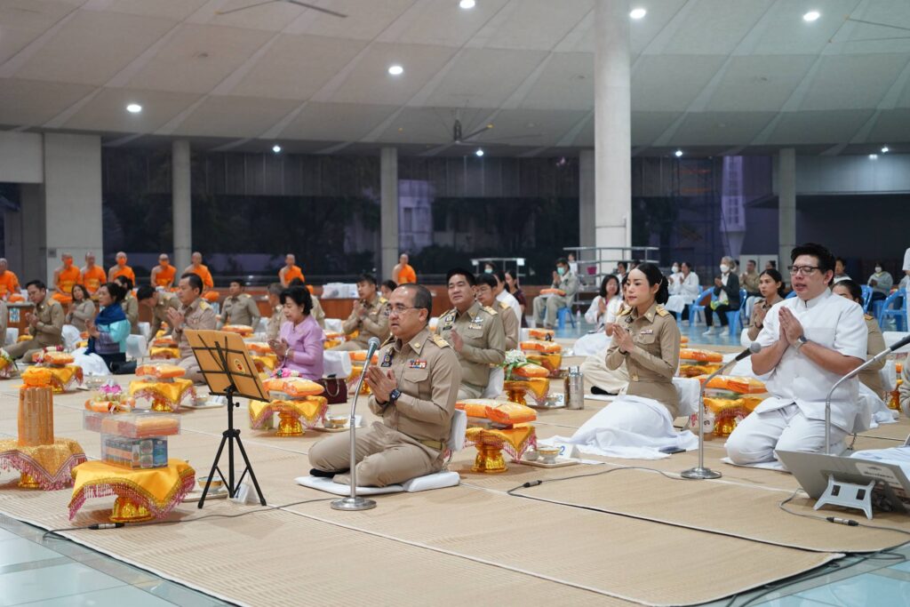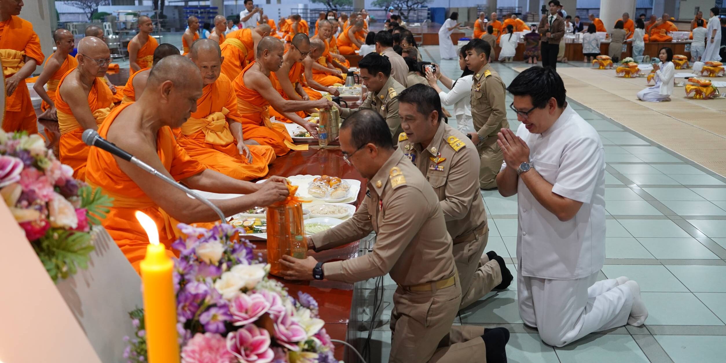 ทั้งนี้ ในภาคเช้าเวลา 06.30 น. ผู้ว่าราชการจังหวัดปทุมธานีและคณะยังได้ร่วมกิจกรรม “ผู้ว่าฯ พาหิ้วปิ่นโตเข้าวัด รักษาศีล 5 (วัด ประชา รัฐ สร้างสุข)” ถวายภัตตาหารเช้าเป็นสังฆทานแด่คณะสงฆ์หมู่ใหญ่ โดยมีพระครูปลัดรัตนวีรวัฒน์ เจ้าอาวาสวัดพระธรรมกาย เป็นประธานสงฆ์ ณ หอฉันคุณยายอาจารย์มหารัตนอุบาสิกาจันทร์ ขนนกยูง จากนั้น เข้ากราบนมัสการและรับฟังโอวาทจากหลวงพ่อทัตตชีโว ณ อาศรมบัณฑิต วัดพระธรรมกาย โดยมี ผศ.ดร.วีระ สุภะ ไวยาวัจกรวัดพระธรรมกาย พร้อมด้วยนางสาวบุญจันทร์ บ่อไทย เลขานุการมูลนิธิธรรมกาย, นายองอาจ ณฐ ธรรมนิทา โฆษกคณะศิษยานุศิษย์วัดพระธรรมกาย และคณะอุบาสก อุบาสิกา ให้การต้อนรับ