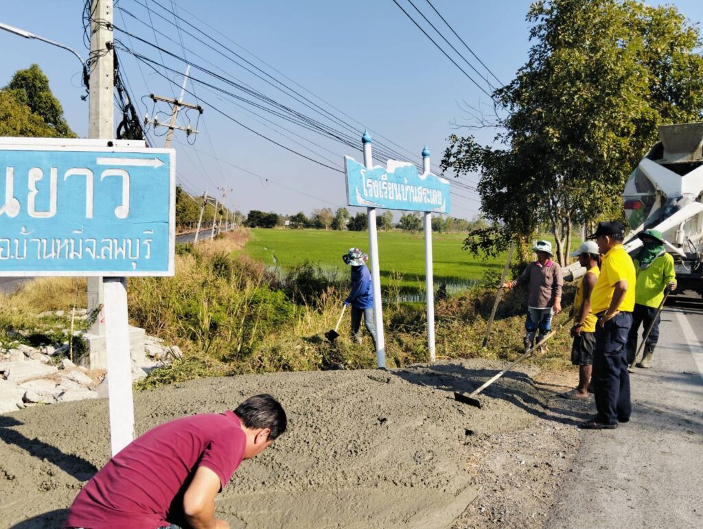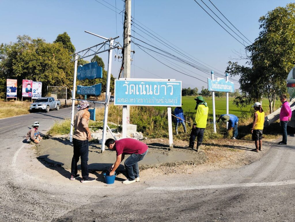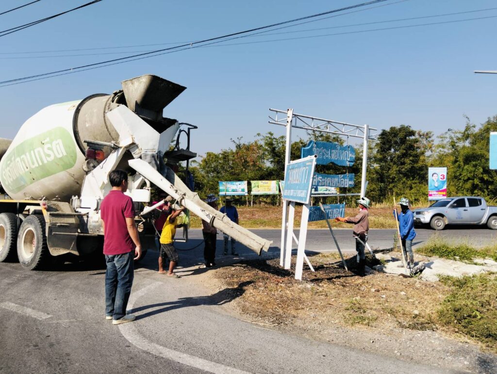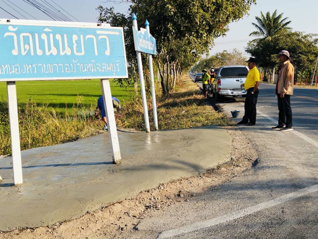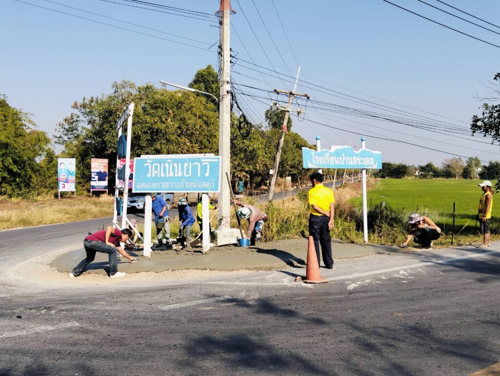 ได้พาทีมงานกองช่าง อบต. หนองทรายขาว ลงพื้นที่หมู่ที่ 4 บ้านสระเตยใหญ่ ทางแยกทางเข้าบ้านสระเตยใหญ่ เพื่อทำการเทพื้นปูนปรับปรุงภูมิทัศน์บริเวณที่ตั้งป้ายวัดต่างๆ ทางแยก