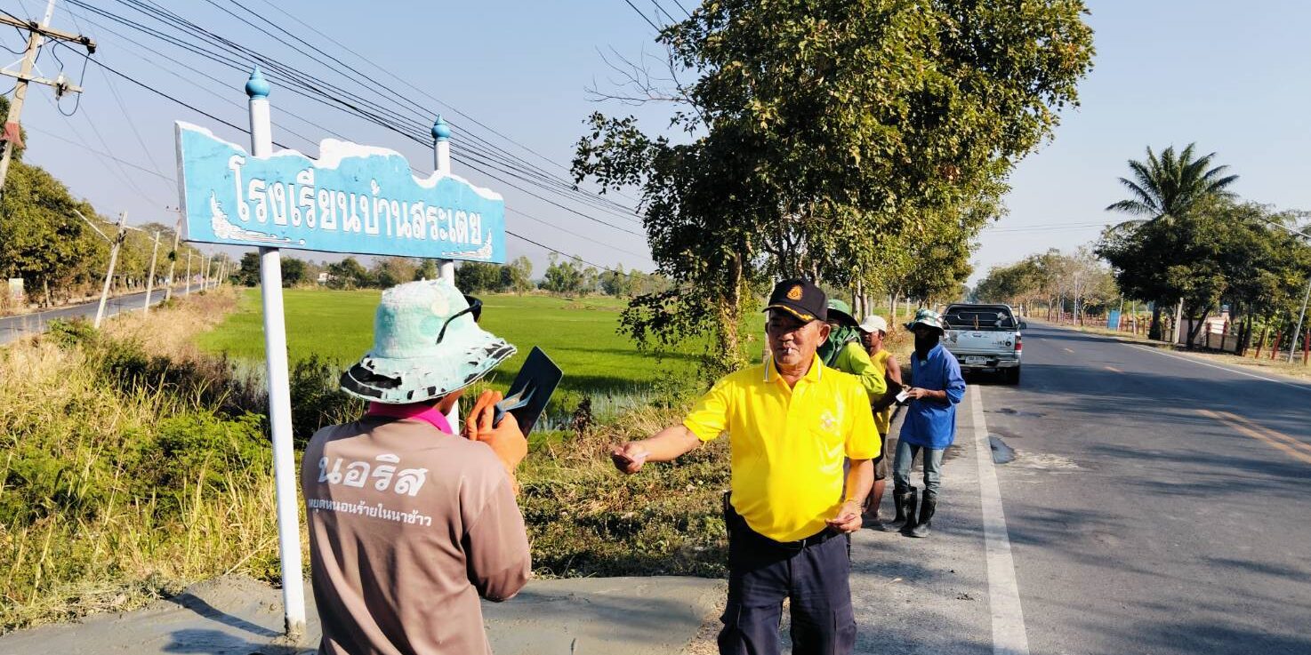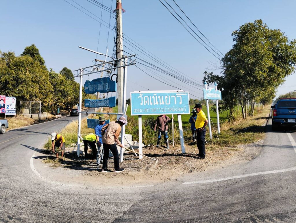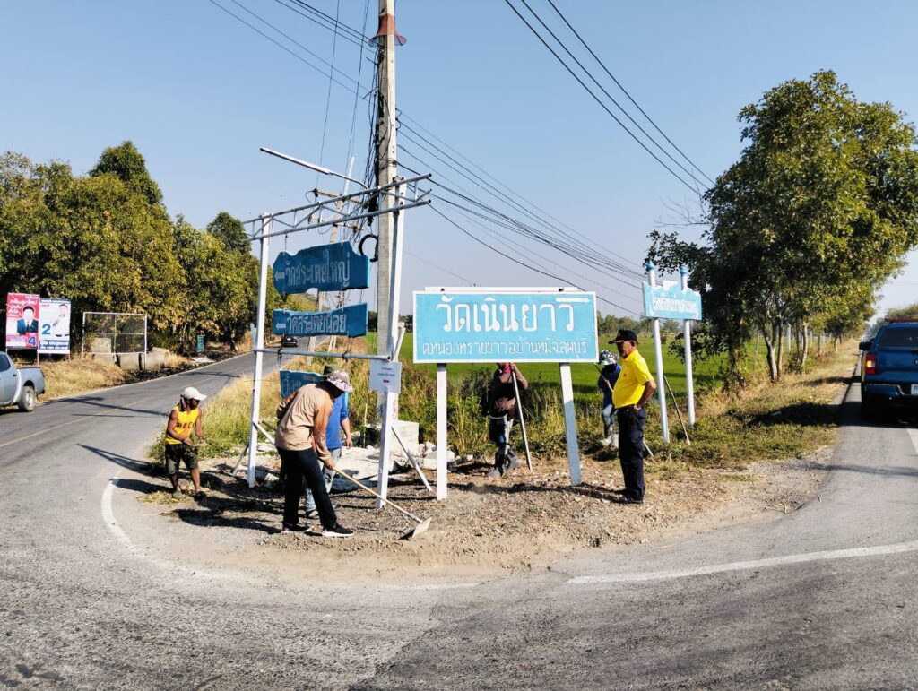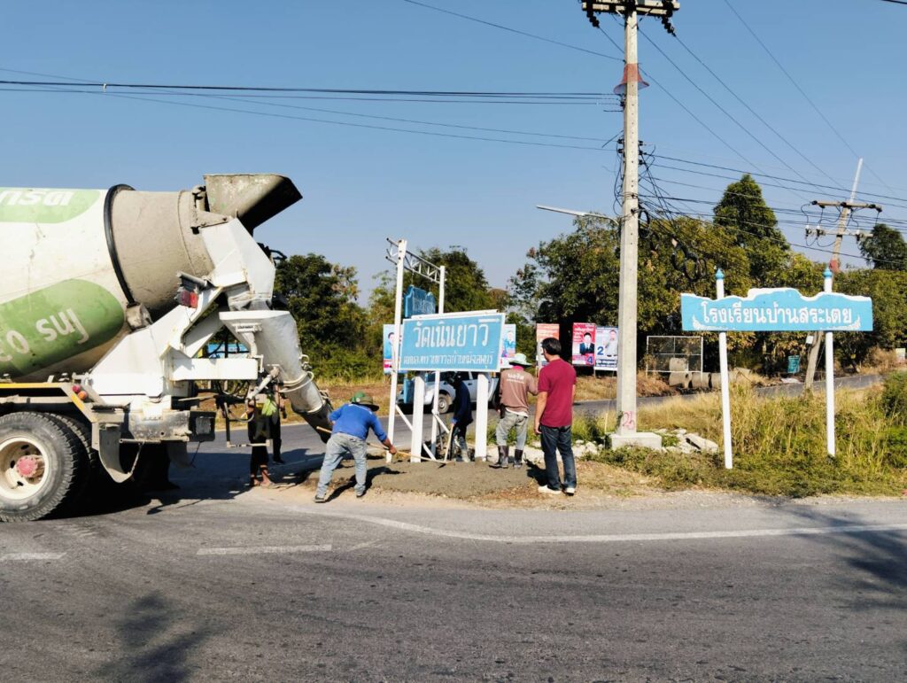 ได้พาทีมงานกองช่าง อบต. หนองทรายขาว ลงพื้นที่หมู่ที่ 4 บ้านสระเตยใหญ่ ทางแยกทางเข้าบ้านสระเตยใหญ่ เพื่อทำการเทพื้นปูนปรับปรุงภูมิทัศน์บริเวณที่ตั้งป้ายวัดต่างๆ ทางแยก