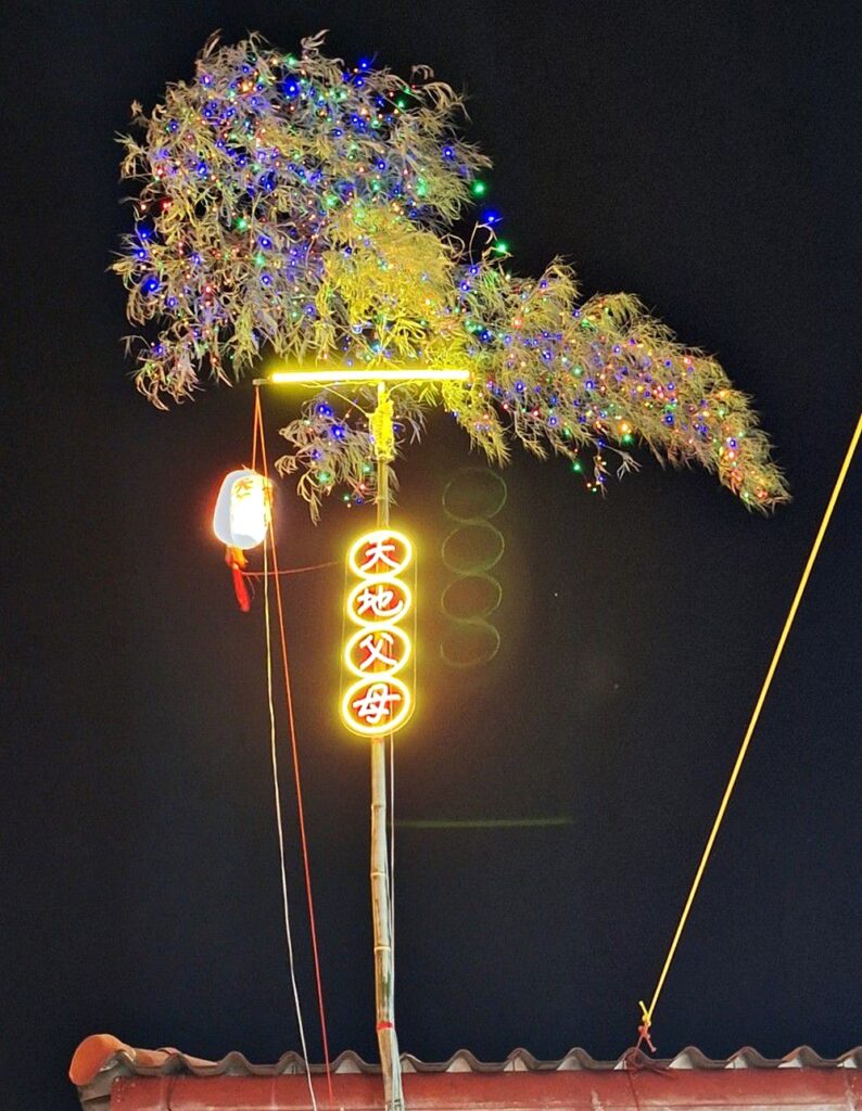 หมายเหตุ : ทีกงเต็ง คือ ต้นไผ่โคมบูชาเทพเจ้าฟ้าดิน โดยมีการประดับด้วยดวงไฟเพื่อความสวยงาม ซึ่งเป็นต้นไผ่เพียงต้นเดียวในการจัดงานพิธี ถือเป็นสิ่งมงคลที่เป็นตัวแทนสื่อถึงเทพเทวดาชั้นสูง