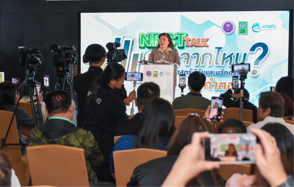 ดร.วิภารัตน์ ดีอ่อง ผู้อำนวยการสำนักงานการวิจัยแห่งชาติ (ผอ.วช.) กล่าวว่า (วช.) ภายใต้ (อว.) ได้ตระหนักถึงการนำงานวิจัย นวัตกรรมและเทคโนโลยี มาเป็นส่วนสำคัญในการทำความเข้าใจในมิติที่เกี่ยวข้องกับสิ่งแวดล้อม โดยอย่างยิ่งสถานการณ์ฝุ่นละออง PM2.5 บริเวณภาคเหนือ ภาคตะวันออกเฉียงเหนือ และภาคกลางมีค่าฝุ่นละออง PM2.5 สูง (สีแดง) ซึ่งอยู่ในระดับที่มีผลกระทบต่อสุขภาพของประชาชน กิจกรรม NRCT TALK ในครั้งนี้จึงต้องการนำเสนอข้อมูลแหล่งที่มาของฝุ่น PM2.5 จากงานวิจัยและนวัตกรรม ซึ่งครอบคลุมถึงสาเหตุและปัจจัยต่างๆ ที่มีผลต่อการเกิดฝุ่น PM2.5 โดยร่วมมือกับ “ศูนย์รวมผู้เชี่ยวชาญด้านมลพิษอากาศและภูมิอากาศ (HTAPC)” ภายใต้แผนงานการพัฒนาการเป็นศูนย์กลางกําลังคนระดับสูง (Hub of Talent) และศูนย์กลางการเรียนรู้ (Hub of Knowledge) ด้วยวิทยาศาสตร์ วิจัยและนวัตกรรม มีคำตอบ และช่วยให้ประชาชนเข้าใจถึงสาเหตุฝุ่น PM2.5 และสามารถเป็นแนวทางในการเฝ้าระวังและป้องกันตนเอง