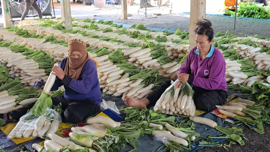 ก่อนเทศกาลตรุษจีน กลุ่มเกษตรกรแปลงใหญ่ผู้ปลูกหัวไชเท้า พากันยิ้มออก เนื่องจากปีนี้ สภาพอากาศดี หนาวนาน ทำให้ได้ผลผลิตดีกว่าทุกปี จึงได้เร่งเก็บผลผลิตหัวไชเท้า ส่งสู่ตลาดเฉลี่ย วันละ 80-100 ตัน ต่อวัน สร้างรายได้เป็นอย่างดี และกำลังเป็นที่ต้องการของตลาด ก่อนถึงเทศกาลตรุษจีน ทำให้ต้องเพิ่มแรงงาน เร่งเก็บผลผลิตให้ทันต่อความต้องการของตลาด