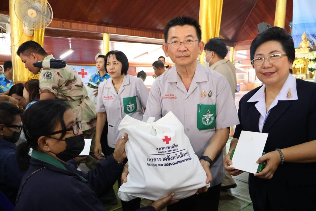 สิงห์บุรี-วันที่ 24 มกราคม 2568 เวลา 09.00 น. นายสุเมธ ธีรนิติ ผู้ว่าราชการจังหวัดสิงห์บุรี เป็นประธานพิธีเปิดกิจกรรมโครงการ “หน่วยบำบัดทุกข์ บำรุงสุข สร้างรอยยิ้มให้ประชาชน” จังหวัดสิงห์บุรี ประจำปีงบประมาณ พ.ศ. 2568 ครั้งที่ 1 ประจำเดือนมกราคม 2568 โดยมีนางวาสนา ธีรนิติ นายกเหล่ากาชาดจังหวัดสิงห์บุรี พร้อมด้วยนางสาววีรวรรณ จันทนเสวี รองผู้ว่าราชการจังหวัดสิงห์บุรี/รองนายกเหล่ากาชาดจังหวัดสิงห์บุรี นายธัมณูญ แจ่มใส ปลัดจังหวัดสิงห์บุรี/รองนายกเหล่ากาชาดจังหวัดสิงห์บุรี หัวหน้าส่วนราชการ นายอำเภอ คณะกรรมการเหล่ากาชาดจังหวัดสิงห์บุรี สมาชิกชมรมแม่บ้านมหาดไทยจังหวัดสิงห์บุรี เจ้าหน้าที่เหล่ากาชาดจังหวัดสิงห์บุรี และหน่วยงานทุกภาคส่วน เข้าร่วมโครงการดังกล่าว ซึ่งได้มอบเครื่องอุปโภค-บริโภค แก่ผู้สูงอายุ ผู้พิการ และผู้ยากไร้ จากเหล่ากาชาดจังหวัดสิงห์บุรี จำนวน 100 ชุด และมอบแว่นสายตายาวให้แก่สูงอายุ/ผู้ยากไร้ จำนวน 500 อัน สำนักงานพัฒนาสังคมและความมั่นคงของมนุษย์ฯ มอบเงินสงเคราะห์เด็ก จำนวน 20 ครอบครัวๆละ 1,000 บาท พร้อมได้ตรวจเยี่ยมหน่วยแพทย์อาสาสมเด็จพระราชชนนี (พอ.สว.) และหน่วยงานที่ออกบริการประชาชน ณ วัดศรัทธาภิรม ตำบลม่วงหมู่ อำเภอเมืองสิงห์บุรี จังหวัดสิงห์บุรี