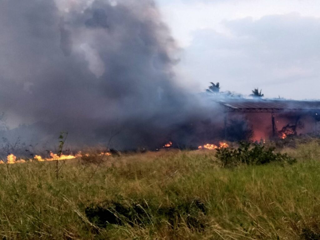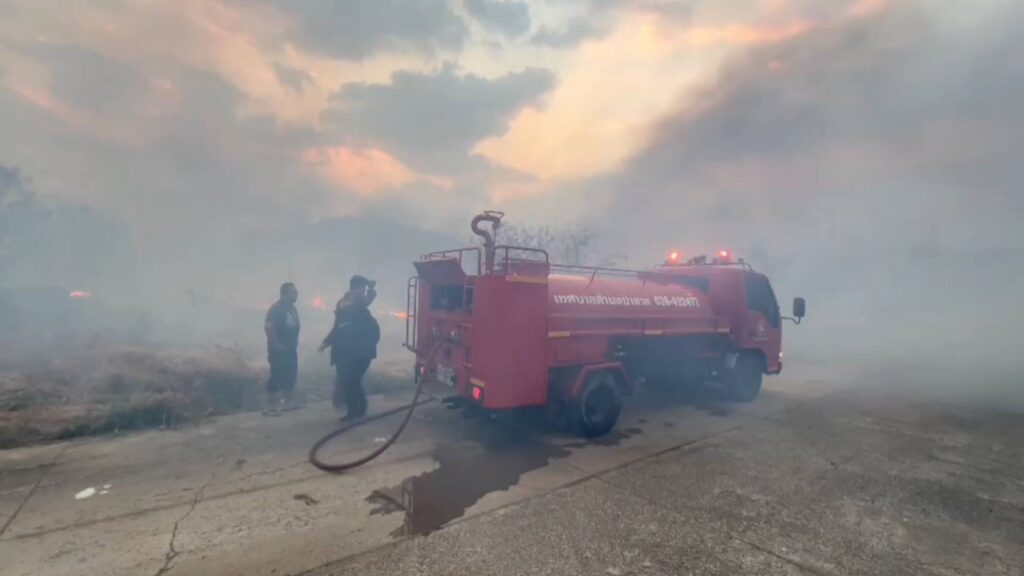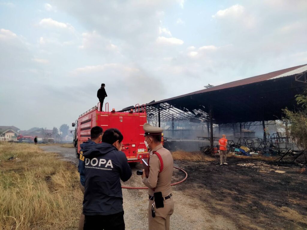 ทุ่งควบคุมเพลิงไม่ได้ลมแรง ลามไหม้ติดโกดังเก็บวัตถุก่อสร้างวาดไปทั้งหลัง