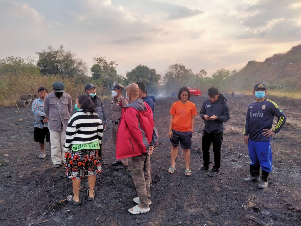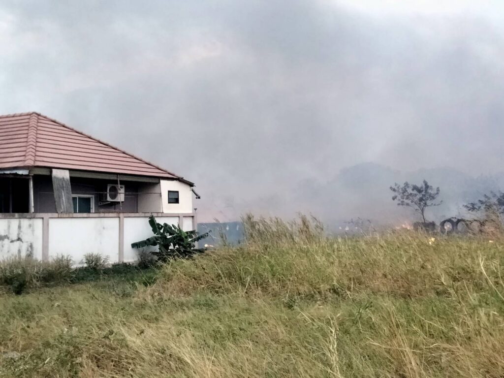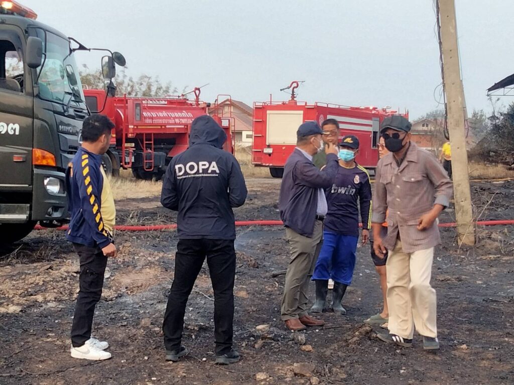 โดยสาเหตุต้นเพลิง เกิดจากไฟไหม้ทุ่งควบคุมเพลิงไม่ได้ลมแรง ลามไหม้ติดโกดังเก็บวัตถุก่อสร้างวาดไปทั้งหลัง