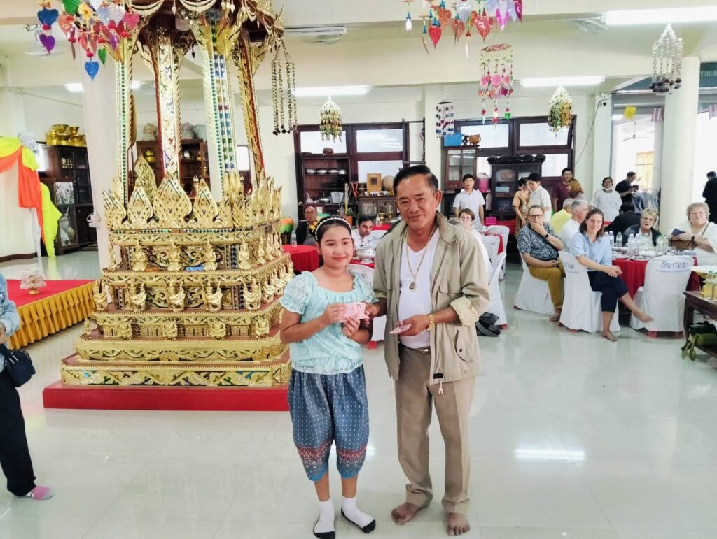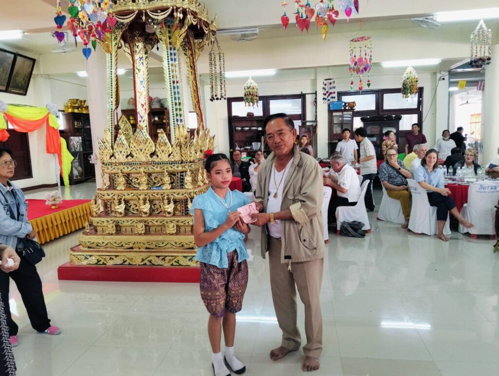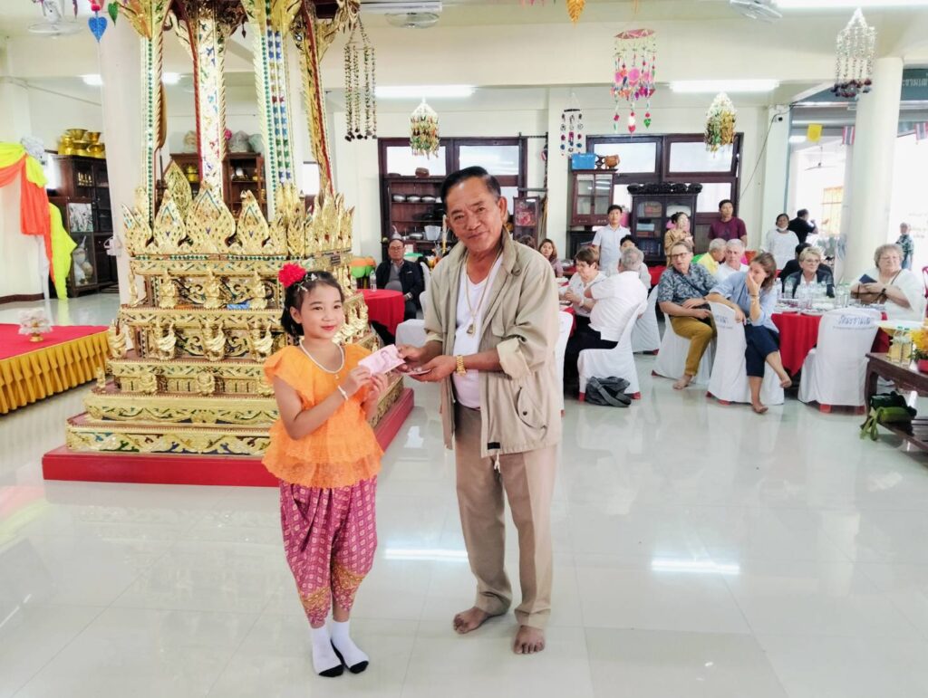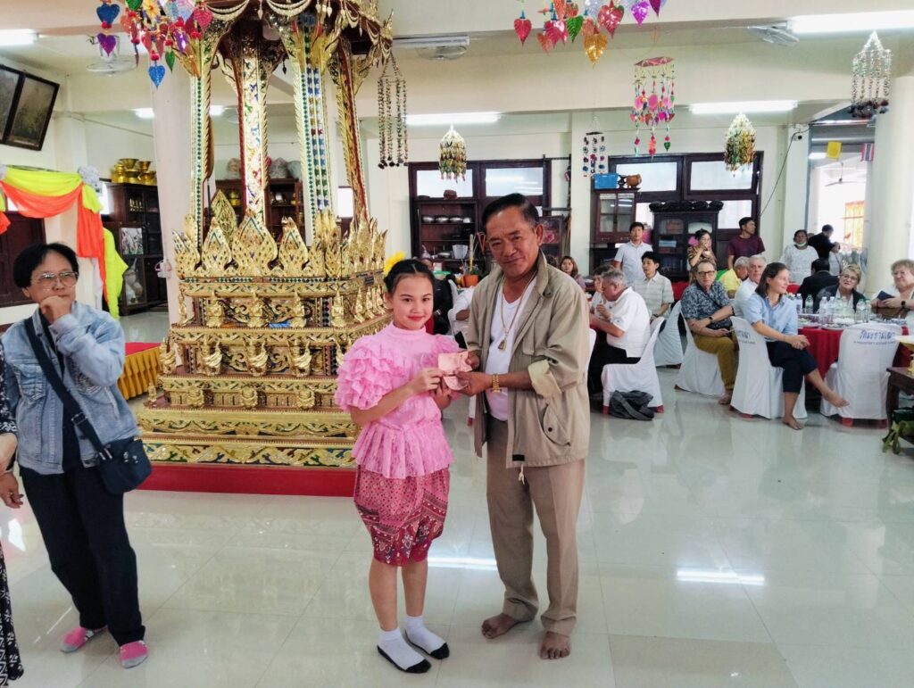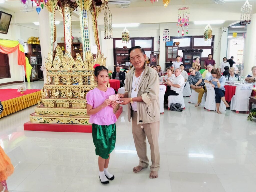ร่วมงานทำบุญ 100 วัน ของ “นายมนตรี กางกรณ์ หมู่ที่ 2 บ้านมะขามเฒ่า” ณ วัดบ้านมะขามเฒ่า ซึ่ง “นายมนตรี กางกรณ์ เป็นผู้ที่เคยมอบเงินทุนการศึกษาของกับกลุ่มเพื่อนในฝรั่งเศษ มามอบให้กับนักเรียนโรงเรียนบ้านสระเตยใหญ่” และท่านนายก อบต.หนองทรายขาว มอบรางวัลให้กับที่ชุดทำการแสดงในวันนี้อีกด้วย