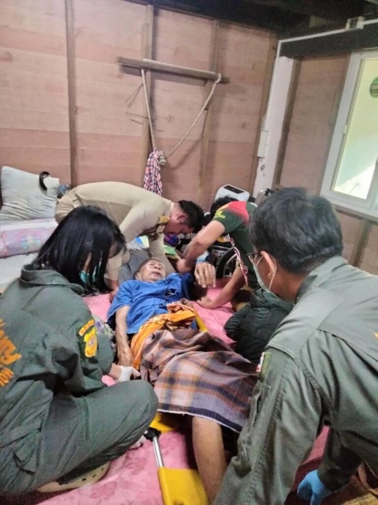 ได้รับแจ้งจากญาติขอรถรับผู้ป่วย “นายแถม สีมา อายุ 96 ปี บ้านเลขที่ 28 หมู่ 2 บ้านมะขามเฒ่า ต.หนองทรายขาว (ซึ่งเป็นผู้ป่วยติดเตียงไม่สามารถเดินได้ อาการหน้าตาบวม,ปวดตามกระดูกทั้งตัว,หน้ามืด,หายใจไม่อิ่ม