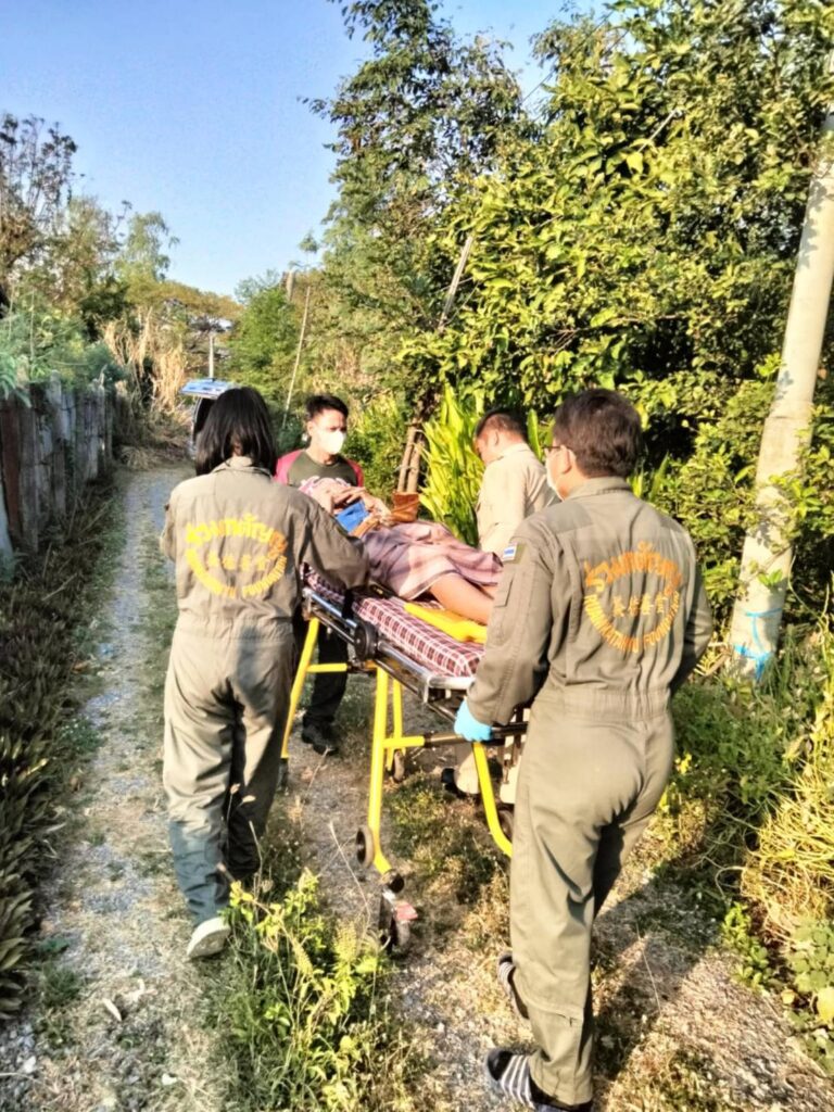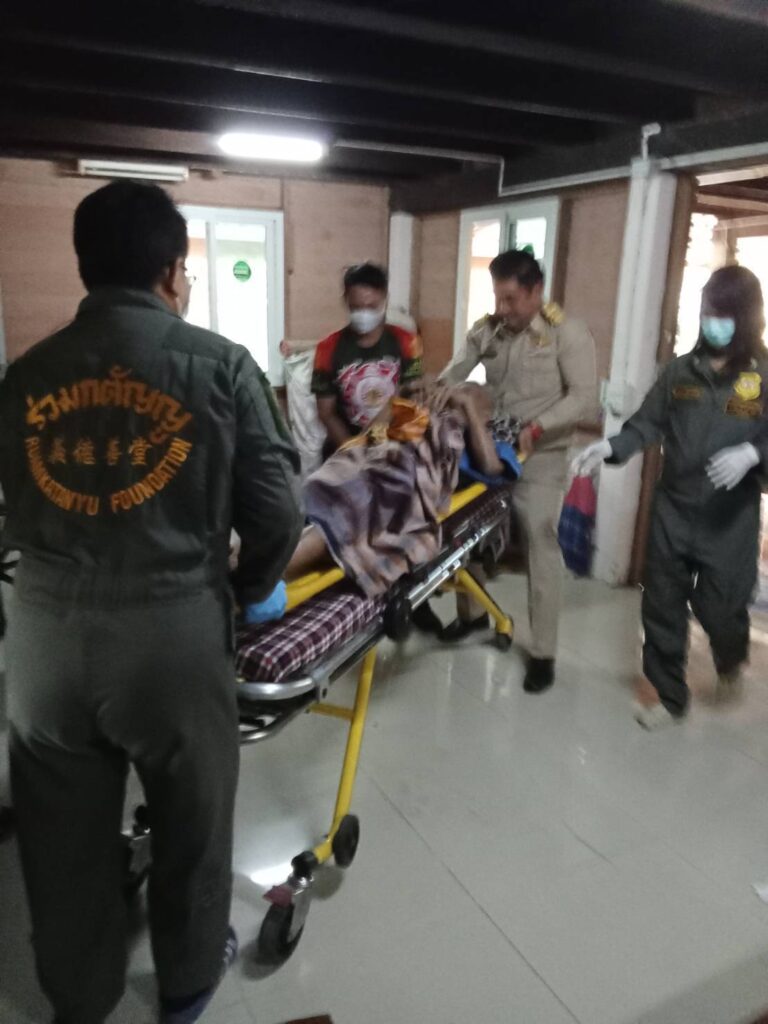 จึงได้มอบหมายให้เลขานุการนายก อบต.หนองทรายขาว ลงพื้นที่พร้อมได้ประสานมูลนิธิร่วมกตัญญู จุดบ้านหมี่ นำตัวเข้ารักษาต่อ รพ.บ้านหมี่ เพื่อรักษาตัวต่อไป