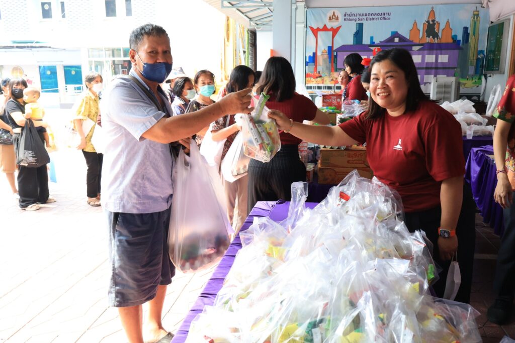 ทั้งนี้ โครงการ BKK Food Bank Center ของสำนักงานเขตคลองสาน ดำเนินการตามนโยบายผู้ว่าราชการกรุงเทพมหานคร เรื่อง การแก้ปัญหาอาหารเหลือทิ้ง (Food Waste) จึงได้มีการรวบรวมอาหาร เครื่องอุปโภค บริโภค จากผู้ที่อยากแบ่งปัน ส่งต่ออาหารให้แก่กลุ่มเปราะบางอย่างเป็นรูปธรรม ไม่ว่าจะเป็นกลุ่มผู้สูงอายุ กลุ่มผู้ป่วยติดเตียง กลุ่มผู้พิการ และกลุ่มผู้ด้อยโอกาส ในพื้นที่เขตคลองสาน โดยได้จัดสถานที่เก็บของเสมือนร้านสะดวกซื้อ และให้กลุ่มผู้เปราะบางที่อยู่ในฐานข้อมูลของเขตมาเลือกของที่ต้องการ และยังมีการรับ-ส่งต่ออาหารส่วนเกิน (Food Surplus) จาก “ผู้บริจาค ตรงสู่ ผู้รับ” ในพื้นที่และให้ความช่วยเหลือกลุ่มเปราะบางครอบคลุมทุกกลุ่ม ซึ่งเป็นการบูรณาการความร่วมมือระหว่างกรุงเทพมหานคร หน่วยงานภาครัฐ ภาคเอกชน และภาคประชาชน