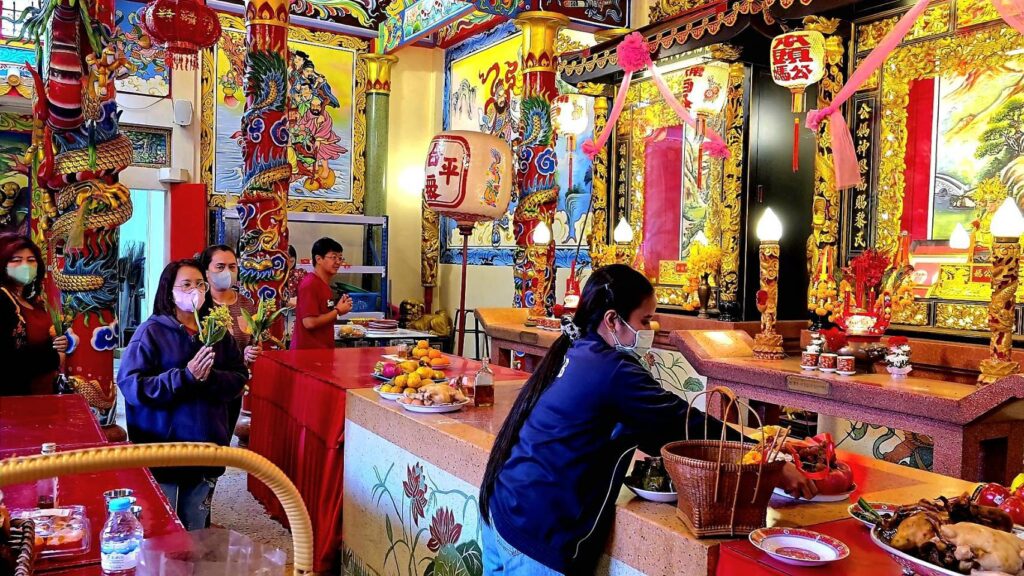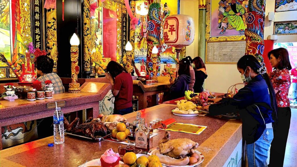 ชาวไทยเชื้อสายจีน ในจังหวัดลพบุรี ต่างพากันเดินทางไปกราบไหว้ของพร สถานที่ศักดิ์สิทธิ์ ตามความเชื้อของคนไทยเชื้อสายจีนในจังหวัดลพบุรี 3 แห่ง ประกอบด้วย ศาลเจ้าพ่อหลักเมือง ศาลลูกศร และ ศาลพระกาฬ สิ่งศักดิ์สิทธิ์คู่บ้านคู่เมือง จังหวัดลพบุรี โดยต่างนำสิ่งของไหว้เจ้าต่าง ๆ อาทิ หมู เป็ด ไก่ ขนมเทียน ขนมเข่ง ผลไม้ 5 อย่าง กระดาษเงินกระดาษทอง และสุรามาเป็นเครื่องเซ่นไหว้เทพเจ้ากันอย่างคึกคัก เพื่ออธิษฐานขอพร ให้กิจการค้าขายต่างๆ ให้มีความเจริญรุ่งเรือง มีความเจริญก้าวหน้าในการประกอบอาชีพการงาน ธุรกิจการค้า และขอให้ครอบครัวมีความร่มเย็นเป็นสุข เพื่อเป็นสิริมงคล ถือเป็นการเริ่มต้นปีใหม่ที่ดี และสืบสานประเพณีตรุษจีนของชาวไทยเชื้อสายจีน ถือว่าเป็นวันที่ดีเป็นสิริมงคล เพื่อความเป็นสิริมงคลแก่ชีวิตและครอบครัว จากนั้นได้แยกย้ายกันกลับไปทำพิธีไหว้บรรพบุรุษ ทั้งนี้ ตามสถานที่ต่างๆ ยังได้ขอความร่วมมือแก่ผู้ที่มาสักการะสิ่งศักดิ์สิทธิ์ งดการจุดธูป เทียน เพราะอาจก่อให้เกิดมลพิษ ควันธูปนอกจากทำให้เกิดฝุ่นละอองแล้ว ยังเป็นอันตรายต่อสุขภาพด้วย