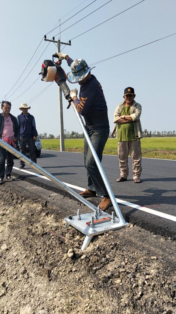 ได้พาทีมงานกองช่าง อบต. หนองทรายขาว ลงพื้นที่บริเวณถนนเส้นทางเข้าบ้านมะขามเฒ่า (ตั้งแต่สามแยกบ้านสระเตยน้อย ถึงซุ้มประตูเข้าวัดมะขามเฒ่า ดูการติดตั้งเสาไฟนวัตกรรมโซล่าเซลล์ (พลังงานแสงอาทิตย์) เส้นทางเข้าบ้านมะขามเฒ่าตลอดทั้งเส้น เพื่อความสว่าง และความปลอดภัยของผู้ใช้ถนนเส้นทางนี้