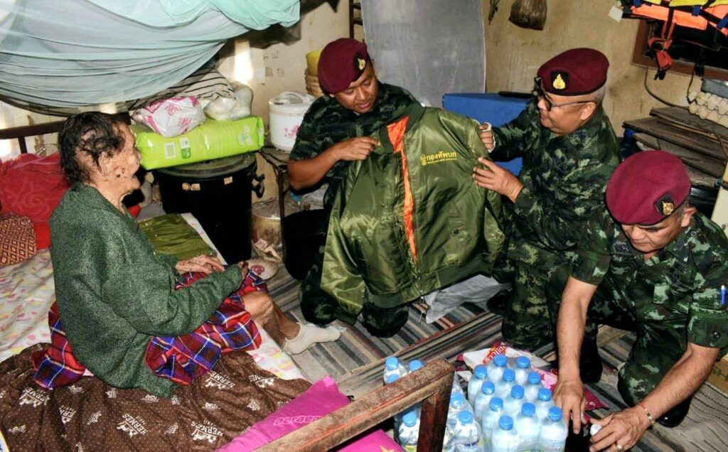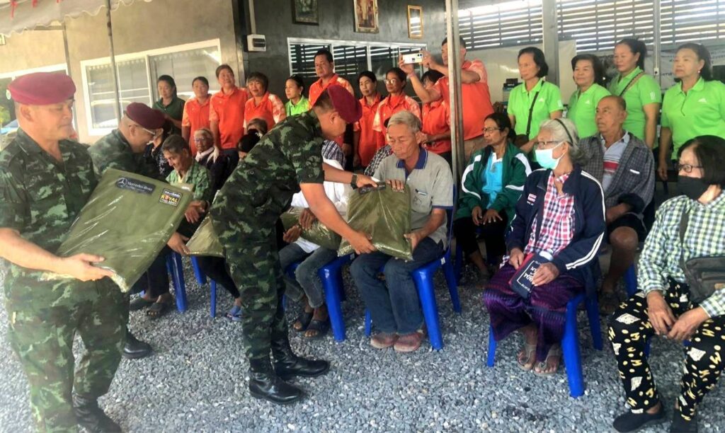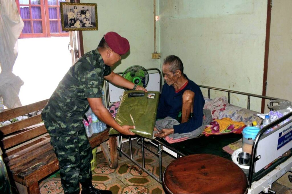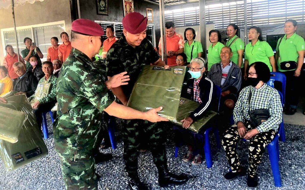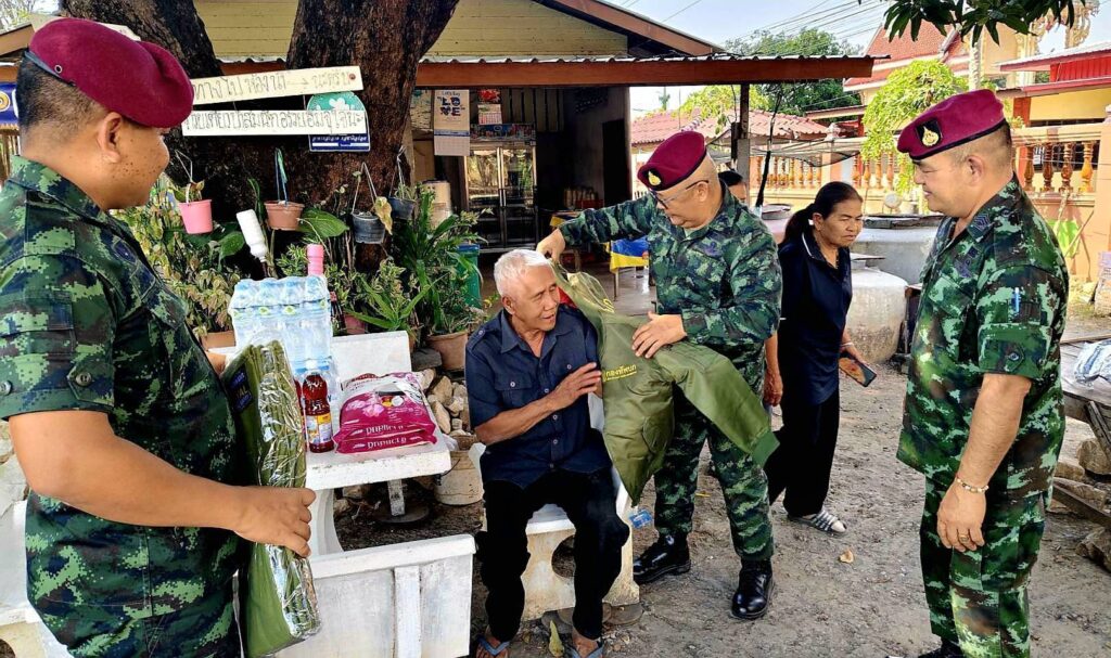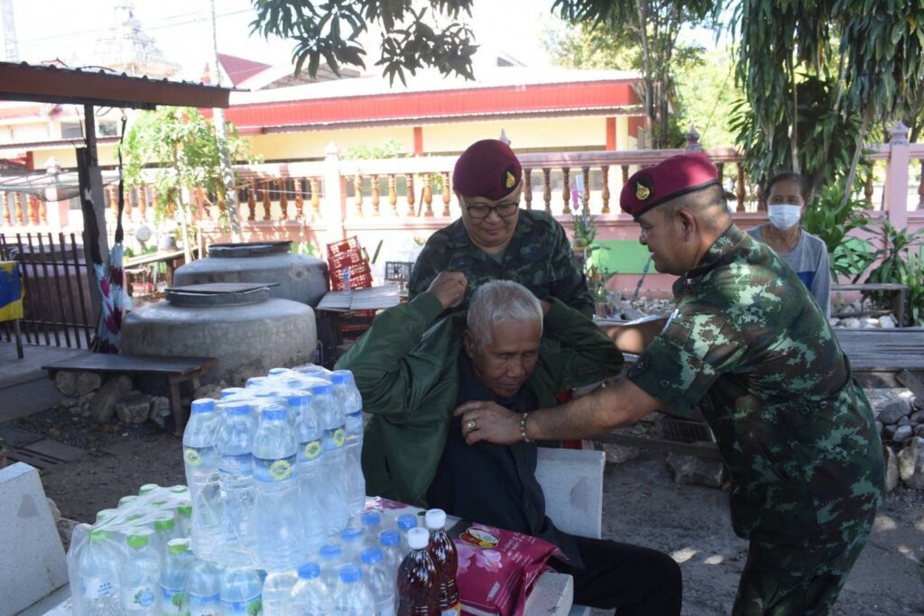 พ.ท.พิชญ์ ผลาพรม ผู้ยังคับกองพันทหารสื่อสาร ที่ 35 หน่วยบัญชาการสงครามพิเศษ จ.ลพบุรี (ส.พัน.35 นสศ.) จัดกำลังพลชุดปฏิบัติการพลเรือนของหน่วยฯ พร้อมคณะ เดินทางลงพื้นที่พบปะประชาชน และมอบผ้าห่มกันหนาวซึ่งได้รับมอบมาจากกองทัพบก ไปมอบให้กับประชาชนกลุ่มเปาะบาง และเป็นผู้ประสบภัยหนาว จำนวน 20 ครัวเรือน ณ ที่ทำการกำนันตำบลโคกตูม อ.เมือง จ.ลพบุรี พร้อมทั้งร่วมกันออกเดินเท้าลงพื้นที่ นำผ้าห่มกันหนาว เสื้อกันหนาว และเครื่องอุปโภคบริโภคพร้อมน้ำดื่ม เยี่ยมให้กำลังใจ และมอบให้แก่ ผู้สูงอายุ และผู้ป่วยติดเตียง จำนวน 3 ครัวเรือน ที่ประสบกับสภาพอากาศหนาวเย็น เพื่อคลายความหนาว ตามนโยบายของกองทัพบก ทำให้ ประชาชนมีความปลื้มใจและดีใจเป็นอย่างมากที่มีหน่วยทหารกองทัพบก มีความห่วงใยได้ลงพื้นที่มอบผ้าห่ม ให้กับผู้ประสบภัยหนาวด้วยความห่วงใยและความรักที่มีต่อประชาชน โดยเฉพาะกลุ่มผู้สูงอายุ กลุ่มผู้ยากไร้ และผู้ป่วยที่ไม่สามารถช่วยเหลือตนเองได้
