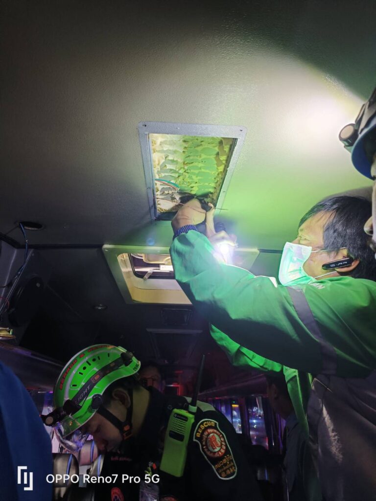 ที่เกิดเหตุพบผู้โดยสารที่มากับรถคันดังกล่าวจำนวน39คนได้วิ่งหนีลงจากรถบัสอย่างเร่งรีบมาอยู่บริเวณริมถนนซึ่งอยู่ในอาการตัวสั่นตกใจกลัวในเหตุการณ์ที่กำลังเกิด ภายในรถยังมีกลุ่มควันลอยอยู่เต็มตัวรถ