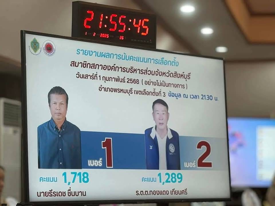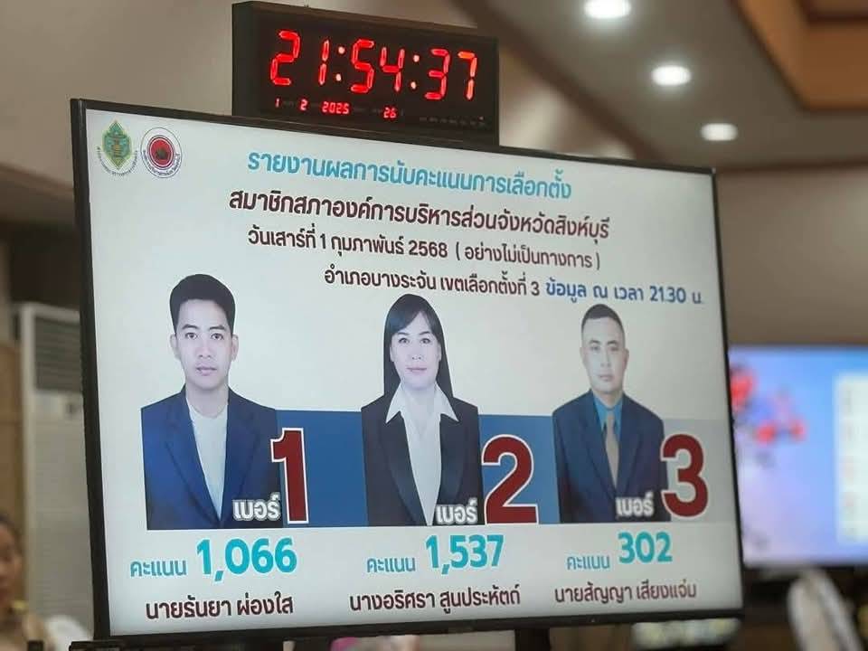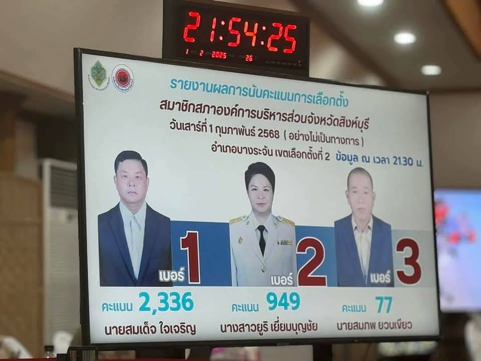 จากผลการนับคะแนนการเลือกตั้ง นายกองค์การบริหารส่วนจังหวัดสิงห์บุรี(อบจ.) และสมาชิกสภาองค์การบริหารส่วนจังหวัดสิงห์บุรี(ส.อบจ.) อย่างไม่เป็นทางการ สิ้นสุด ณ เวลา 22.56 น. ของวันที่ 1 กุมภาพันธ์ 2568 ซึ่งอาจมีการเปลี่ยนแปลง หรือคลาดเคลื่อนบ้าง ดังนั้นจึงยังต้องรอผลการประกาศอย่างเป็นทางการ จาก กก.ต.จังหวัดสิงห์บุรี อีกครั้ง
