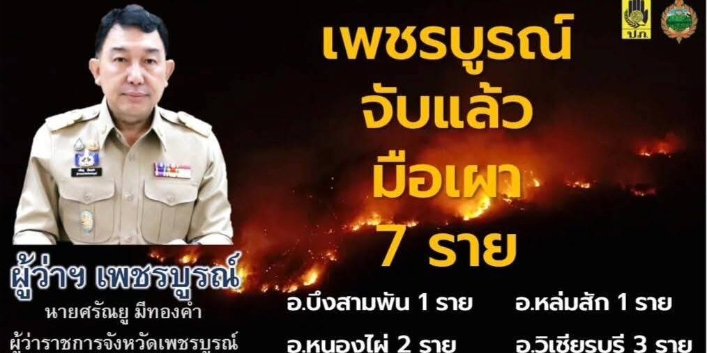 นายศรัณยู มีทองคำ ผู้ว่าราชการจังหวัดเพชรบูรณ์ เปิดเผยว่า จากที่ได้ใช้มาตรการเข้มงวดในการแก้ไขปัญหาไฟป่า หมอกควัน โดยห้ามเขาเด็ดขาดในทุกพื้นที่ ปรากฎว่ายังมีการลักลอบเผาอย่างต่อเนื่อง จึงจำเป็นต้องใช้มาตรการทางกฎหมายมาบังคับใช้ และดำเนินคดีกับผู้ฝ่าฝืนแล้ว จำนวน 7 ราย อำเภอวิเชียรบุรี 3 ราย อำเภอหนองไผ่ 2 ราย อำเภอบึงสามพัน 1 ราย อำเภอหล่มสัก 1 ราย