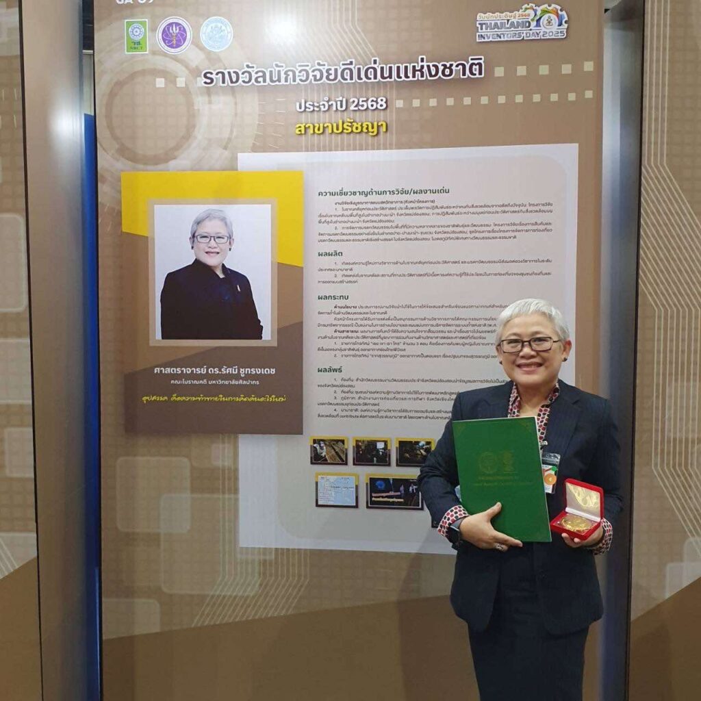 ในการนี้ “ศาสตราจารย์ ดร.รัศมี ชูทรงเดช” อาจารย์ภาควิชาโบราณคดี คณะโบราณคดี มหาวิทยาลัยศิลปากร ได้เข้ารับรางวัลนักวิจัยดีเด่นแห่งชาติ สาขาปรัชญา ประจำปีงบประมาณ 2568 จากสำนักงานการวิจัยแห่งชาติ (วช.) ในครั้งนี้ด้วย