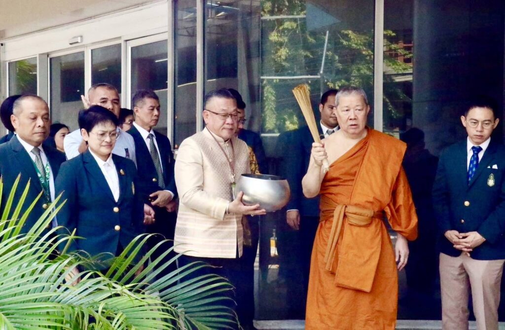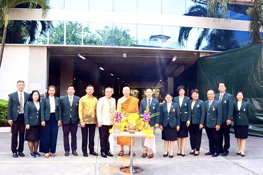 จากนั้น สมเด็จพระมหารัชมงคลมุนี ประธานฝ่ายสงฆ์ และนายวิทวัส ชัยภาคภูมิ ประธานในพิธีเทดินปลูกและรดน้ำต้นรัตนพฤกษ์ พร้อมโปรยข้าวตอกดอกไม้ ประพรมน้ำพระพุทธมนต์ ณ บริเวณอาคารที่ทำการถาวรแห่งใหม่