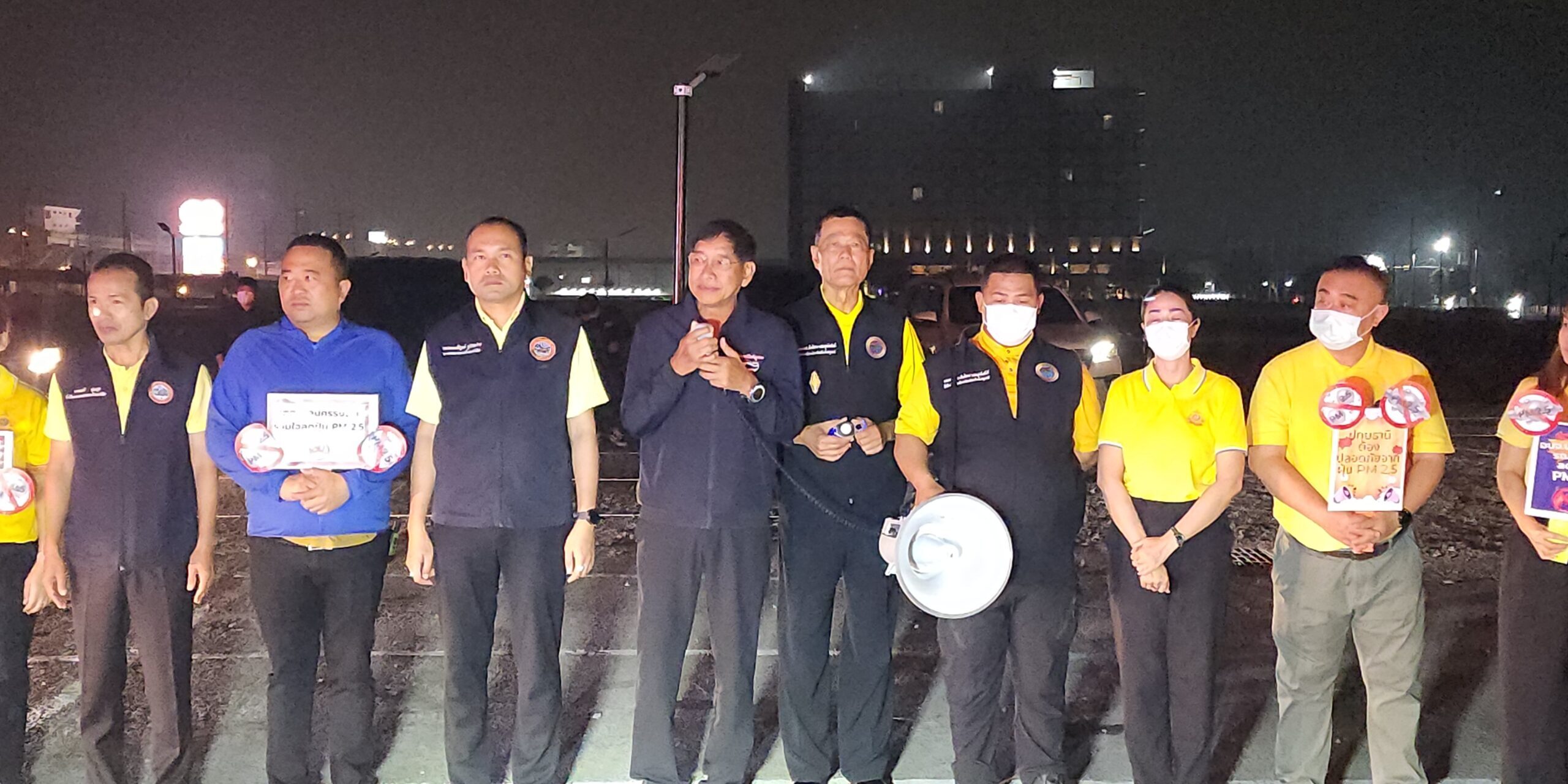 เมื่อเวลา 05.00 น.วันที่ 4 กุมภาพันธ์ 2568 ที่ ลานจอดรถหน้า อิเด็กซ์ ลิฟวิ่งมอลล์ รังสิต ศูนย์การค้าฟิวเจอร์พาร์คและสเปลล์ ต.ประชาธิปัตย์ อ.ธัญบุรี จ.ปทุมธานี พลตำรวจโท คำรณวิทย์ ธูปกระจ่าง นายกองค์การบริหารส่วนจังหวัดปทุมธานี พร้อมด้วย ร้อยตำรวจเอก ดร.ตรีลุพธ์ ธูปกระจ่าง นายกเทศมนตรีนครรังสิต และคณะผู้บริหารองค์การบริหารส่วนจังหวัดปทุมธานี ร่วมปล่อยขบวนรถฉีดพ่นละอองน้ำฝอยลงพื้นที่ มีจำนวน รถทั้งหมด กว่า 30 อาทิ รถฉีดพ่นละอองน้ำฝอย 8 คั้น รถล้างถนนจากเทศบาลต่างๆ 10 คัน และรถตรวจการนำขวบนและปิดท้ายขบวนอีก กว่า 20 คัน ที่เข้าร่วม และมีรถจากเทศบาลนครังสิต เทศบาลเมืองบึงยี่โถ เทศบาลเมืองคูคต เป็นต้น เพื่อดำเนินการลดปริมาณฝุ่น PM2.5 ให้กับประชาชน บริเวณหมู่บ้าน ชุมชน วัด โรงเรียน และสถานที่ราชการต่าง ๆ โดยขบวนรถวิ่งรอบพื้นที่จังหวัดปทุมธานี ในช่วงเช้ามืดลดฝุ่นพิษให้ประชาชนตื่นขึ้นมาใช้ชีวิตปกติหรือออกทำงานได้รับผลกระทบน้อยที่สุด