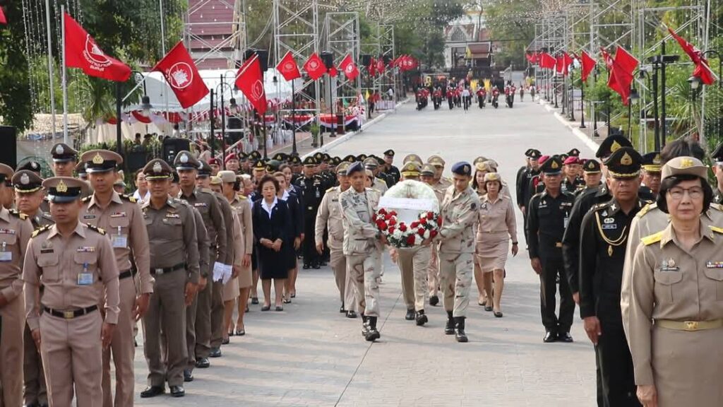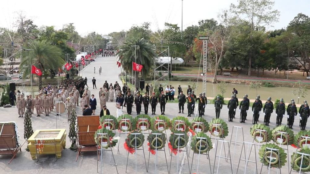 วันที่ 4 กุมภาพันธ์ 2568 นายสุเมธ ธีรนิติ ผู้ว่าราชการจังหวัดสิงห์บุรี เป็นประธานในพิธีวางพวงมาลาและกล่าวสดุดีวีรกรรมของวีรชนค่ายบางระจัน ณ อนุสาวรีย์วีรชนค่ายบางระจัน โดยมี นางวาสนา ธีรนิติ เหล่ากาชาดจังหวัดสิงห์บุรี หัวหน้าศาล รองผู้ว่าราชการจังหวดัสิงห์บุรี ผู้แทนผู้ว่าราชการจังหวัด อยุธยา อ่างทอง ชัยนาท ลพบุรี สระบุรี ผู้แทนเหล่าทัพ ทหาร ตำรวจ หัวหน้าส่วนราชการ องค์กรปกครองส่วนท้องถิ่น ภาครัฐ ภาคเอกชน และลูกหลานชาวบ้านบางระจัน วางพวงมาลาตามลำดับ และทหารกองเกียรติยศ ทำความเคารพวีรชนค่ายบางระจันเพื่อร่วมรำลึกถึงดวงวิญญาณผู้กล้าชาวบ้านบางระจัน