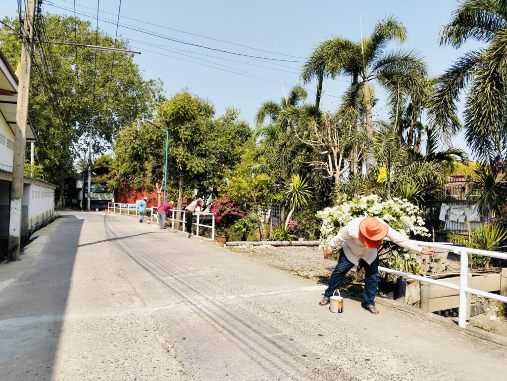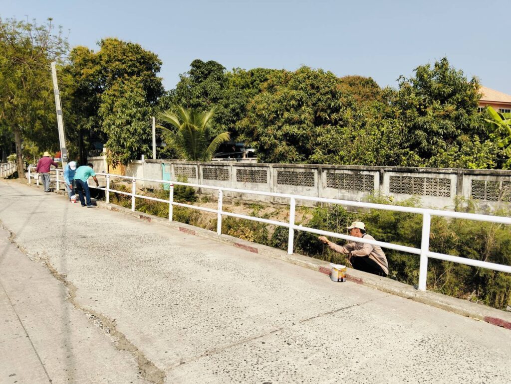 ได้พาทีมงานเจ้าหน้าที่กองช่าง อบต.หนองทรายขาว ลงพื้นที่บริเวณหมู่ที่ 4 บ้านสระเตยใหญ่ เพื่อทำการปรับปรุงทาสีราวกันตกของสะพาน และข้างคลองต่อจากช่วงบริเวณบล็อคคอนเวิร์สที่สร้างใหม่หมู่ที่ 4 บ้านสระเตย