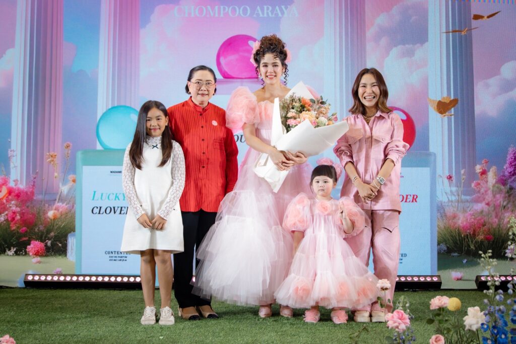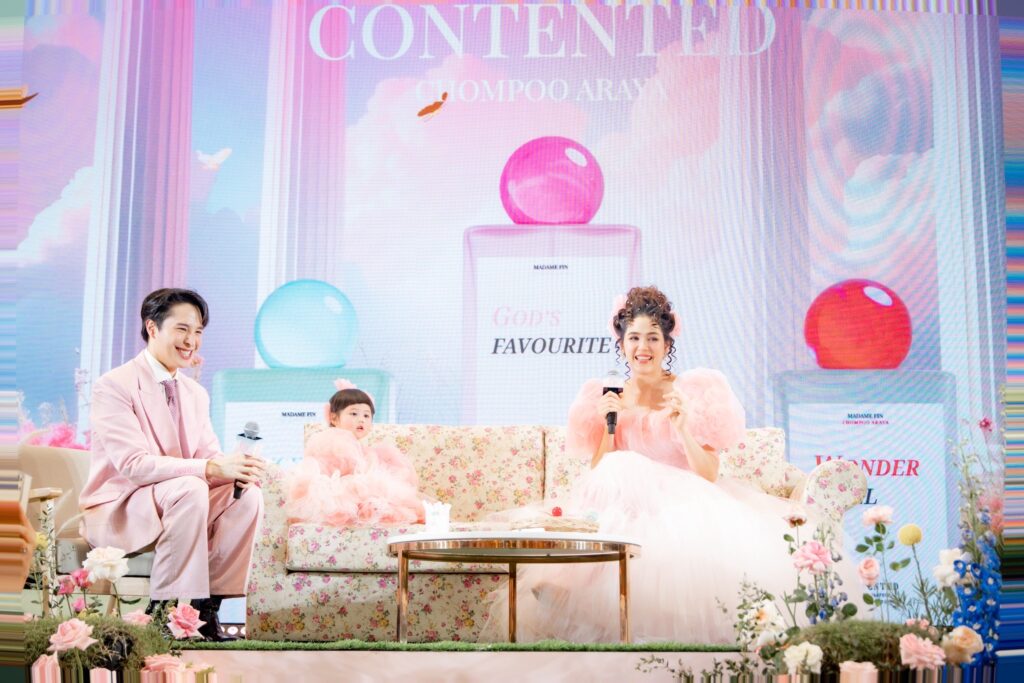 ต้องบอกว่าทำถึง!! โดนใจสายแฟชั่นไลฟ์สไตล์สุดๆ เมื่อบริษัท มาดามฟิน จำกัด ผู้ผลิตแบรนด์น้ำหอมชื่อดัง “มาดามฟิน” จัดบิ๊กเซอร์ไพรส์คว้า 2 แม่ลูกซุปตาร์สายแฟชั่น ชมพู่ อารยา เอ ฮาร์เก็ต และ น้องแอบิเกล นั่งแท่นพรีเซนเตอร์คนล่าสุด กับการเปิดตัวน้ำหอมคอลเลคชั่นใหม่ CONTENTED BY CHOMPOO ARAYA ค้นพบตัวตนของเราในเวอร์ชั่นที่ดีที่สุดในทุกๆ วัน ซึ่งงานนี้เธอยังได้ร่วมคิดค้นน้ำหอม 3 กลิ่น 3 คาแรกเตอร์ ได้แก่ LUCKY CLOVER สัมผัสความสดชื่นที่พลิ้วไหว และโปร่งเบาดุจแสงแรกของวัน , GOD’S FAVOURITE เสน่ห์ของลูกรักพระเจ้า หอมลึกซึ้ง ดึงดูดใจทุกสัมผัส, WONDER WALL กลิ่นที่เรียงร้อยทุกอารมณ์ผ่านความหอม ดั่งบทกวีที่ไม่ต้องใช้คำพูด ซึ่งทั้ง 3 กลิ่นนี้ถูกรังสรรค์ขึ้นด้วยวัตถุดิบ Perfumer ระดับพรีเมียมจากฝรั่งเศส นอกจากนั้นยังได้รับเกียรติจากเหล่าดาราและอินฟลูเอนเซอร์ชื่อดังยกทัพเข้าร่วมงานกันอย่างคับคั่ง อาทิ เอมมี่ มรกต, ไอซ์ อภิษฎา, ปันปัน สุทัตตา, แจ็คกี้ ชาเคอลีน, คารีสา สปริงเก็ตต์, ซาร่า เล็กจ์, มดดำ คชาภา, ธัญญ่า ธัญญาเรศ, ซัน ประชากร, พราว อรณิชา, ปิงปอง ธงชัย, ต้นหอม สกุลตลา, พลอย ชวพร, ป้าตือ, ออน สมฤทัย, เอแคล์, พัมกิ้น, มิค เฉลิมศรี, แจ็ค คากิ, เหม ไรอัน ฯลฯ โดยงานจัดขึ้นอย่างยิ่งใหญ่ ณ แฟชั่นฮอลล์ ชั้น 1 ศูนย์การค้าสยามพารากอน เมื่อวันก่อน