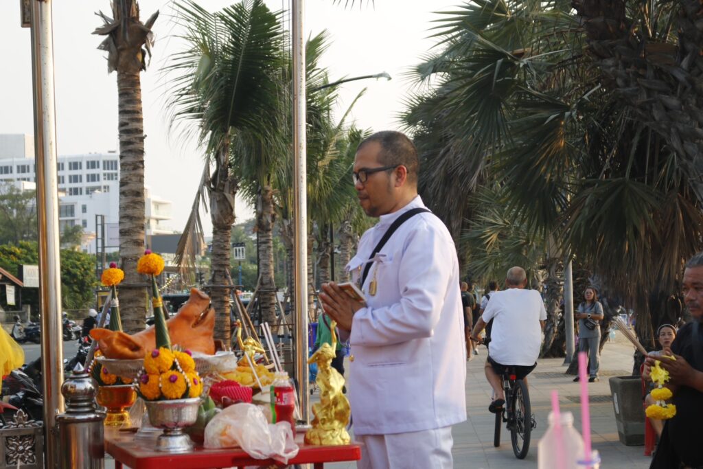 เวลา 17.30 น. วันที่ 5 กุมภาพันธ์ พ.ศ. 2568 ที่บริเวณหน้าศาลเจ้าพ่อเกศงามและสมเด็จพระเจ้าตากสิน