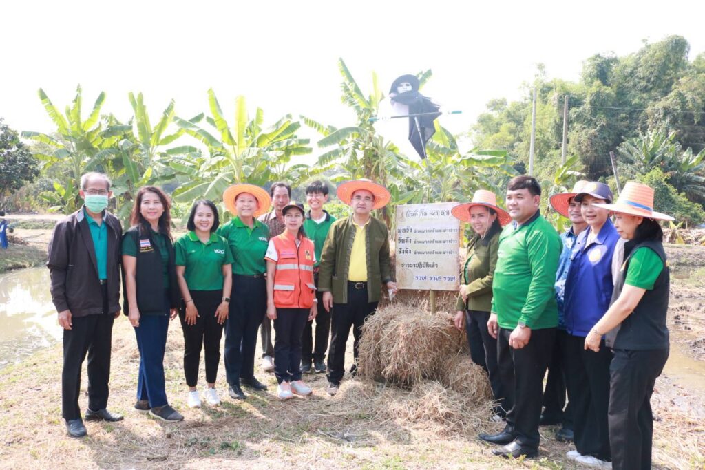 วันที่ 6 กุมภาพันธ์ 2568 ที่ศูนย์จัดการดินปุ๋ยชุมชนเครือข่ายตำบลบึงคอไห หมู่ที่ 8 ตำบลบึงคอไห อำเภอลำลูกกา จังหวัดปทุมธานี นายสมคิด จันทมฤก ผู้ว่าราชการจังหวัดปทุมธานี เป็นประธานเปิดงาน “ชาวนายุคใหม่ ร่วมใจหยุดเผา เปลี่ยนฟางเป็นทอง สู่เมืองปทุมธานีไร้ควัน” โดยมี นายสมชาย ตรีณาวงษ์ นายอำเภอลำลูกกา , นางศศิธร ชาญประเสริฐ เกษตรจังหวัดปทุมธานี , ว่าที่ร้อยตรีเอกรัตน์ จันทร์ศิริ เกษตรกรต้นแบบเจ้าของแปลงสาธิต พร้อมหัวหน้าส่วนราชการ กำนัน , ผู้ใหญ่บ้าน , พี่น้องเกษตรกรชาวอำเภอลำลูกกา กว่า 180 ราย เข้าร่วมงาน