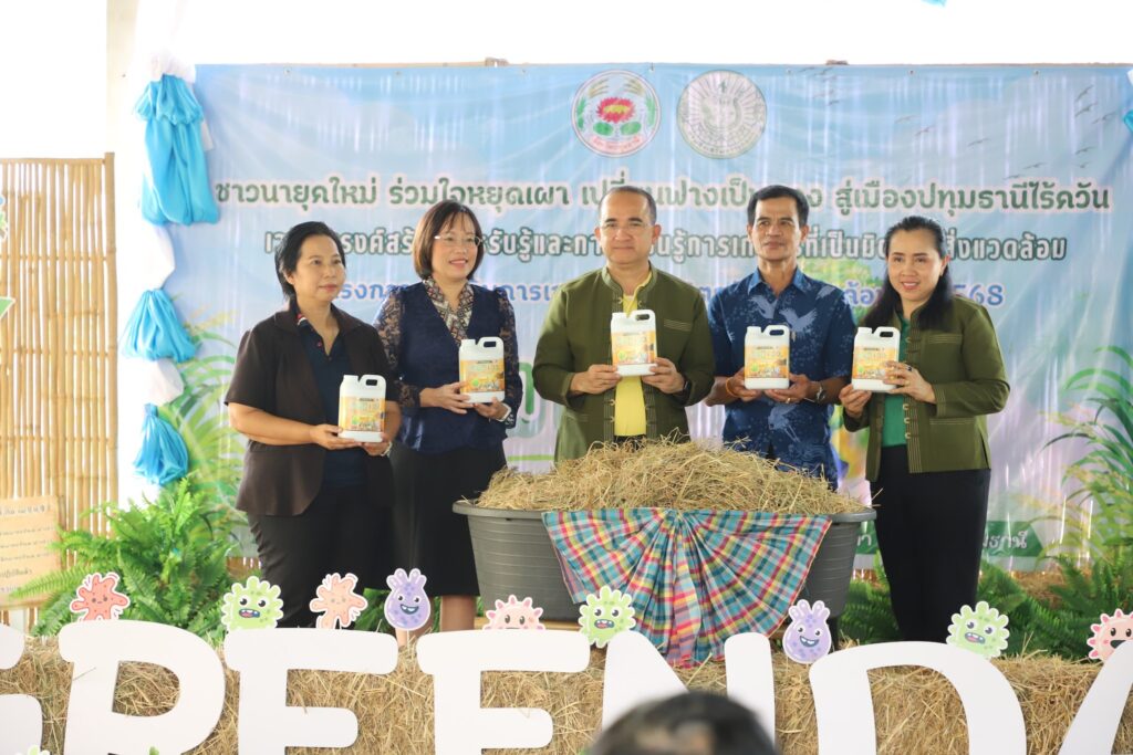 กระทรวงเกษตรและสหกรณ์ซึ่งรับผิดชอบการควบคุมการเผาในพื้นที่การเกษตร ได้มีการส่งเสริมการหยุดเผาในพื้นที่การเกษตร โดยการสร้างการรับรู้ ทำความเข้าใจกับเกษตรกร ให้ตระหนักถึงผลกระทบที่เกิดจากการเผาในพื้นที่การเกษตร สร้างการมีส่วนร่วมของเกษตรกร ในการป้องกันและแก้ไขปัญหา รวมทั้งสร้างเกษตรกรต้นแบบในการทำการเกษตรปลอดการเผา มุ่งสู่การทำการเกษตรที่เป็นมิตรต่อสิ่งแวดล้อม การจัดงาน “ชาวนายุคใหม่ ร่วมใจหยุดเผา เปลี่ยนฟางเป็นทอง สู่เมืองปทุมธานีไร้ควัน” จึงเป็นการนำเสนอทางเลือกด้านนวัตกรรม และเทคโนโลยี ทดแทนการเผา โดยมีสาธิตการทำนาปลอดการเผา ส่งเสริมให้เกษตรกรมีการจัดการวัสดุเหลือใช้ทางการเกษตร ทดแทนการเผาทำลาย ปรับเปลี่ยนวิธีการผลิตจากเดิม มุ่งสู่การทำการเกษตรที่เป็นมิตรกับสิ่งแวดล้อม.