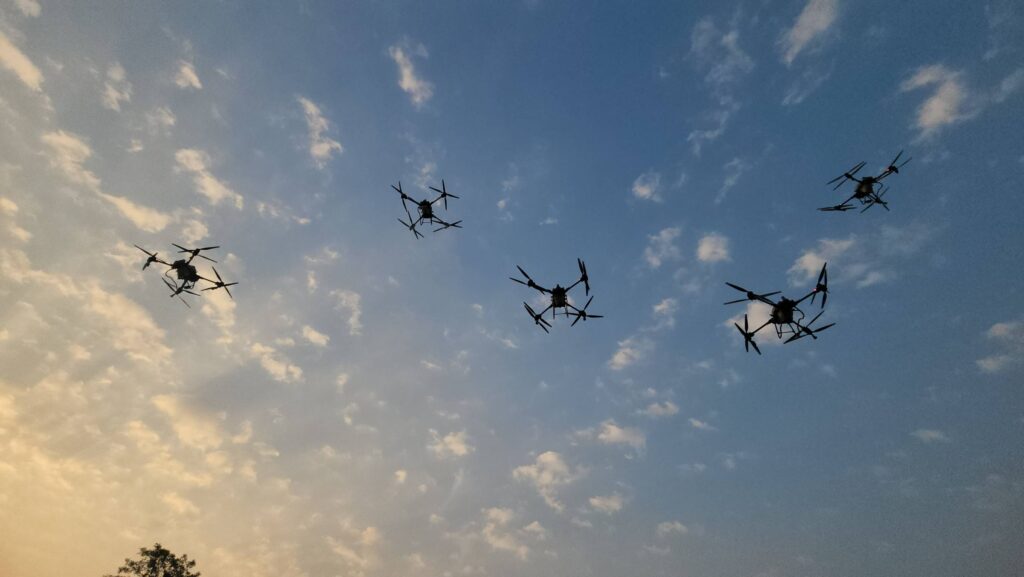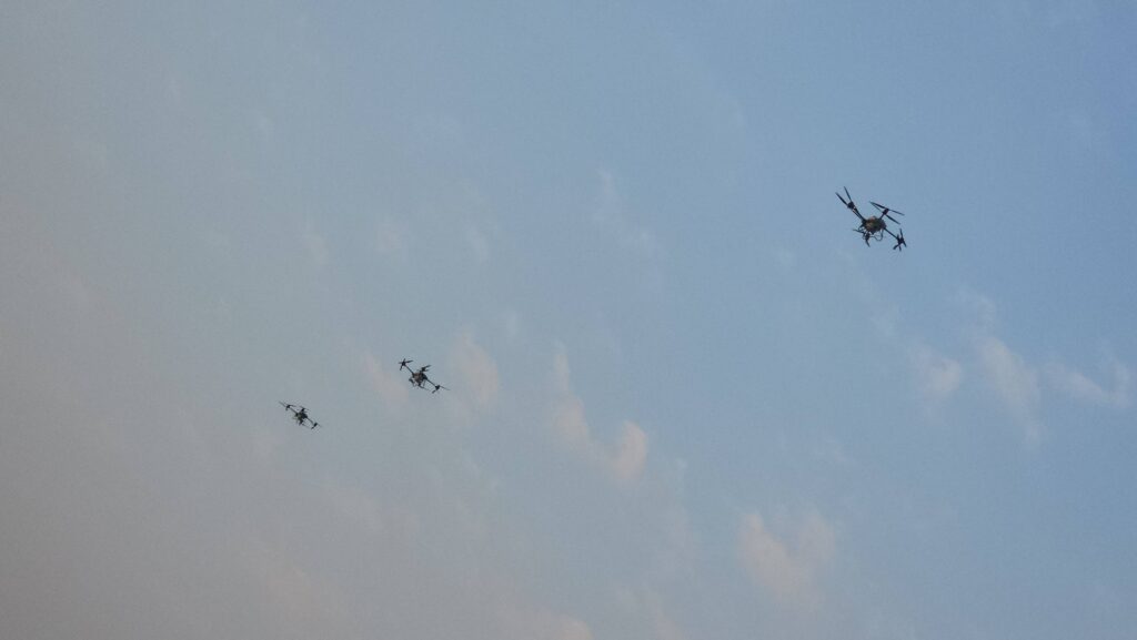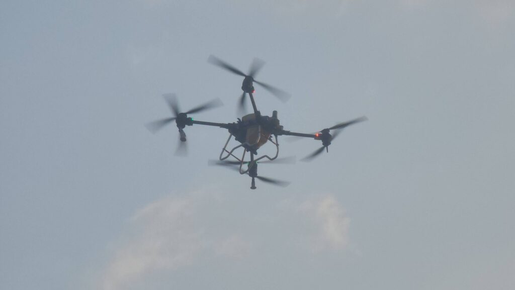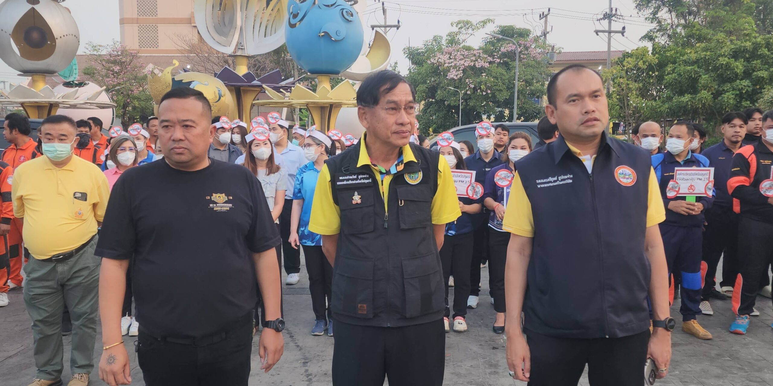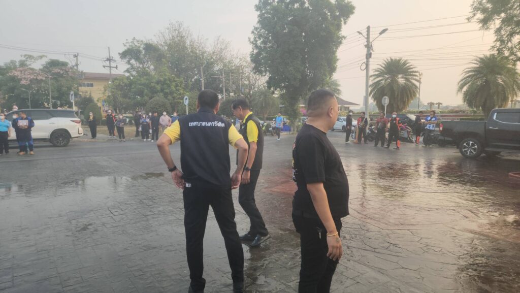 เมื่อเวลา 07.00 น. วันที่ 7 กุมภาพันธ์ 2568 ที่สวนเทพปทุม หน้าศาลากลางหลังเก่า อ.เมืองปทุมธานี จ.ปทุมธานี พลตำรวจโท คำรณวิทย์ ธูปกระจ่าง หรือ บิ๊กแจ๊ส นายกองค์การบริหารส่วนจังหวัดปทุมธานี พร้อมด้วย ร้อยตำรวจเอก ดร.ตรีลุพธ์ ธูปกระจ่าง นายกเทศมนตรีนครรังสิต หัวหน้าส่วนราชการ อบจ.ปทุมธานี เปิดปฏิบัติการสู้ pm2.5 ด้วยการทดลองปล่อยโดรนทางการเกษตรบรรทุกน้ำสะอาด บินขึ้นฟ้าเพื่อปล่อยละอองน้ำจับฝุ่นละอองขนาดเล็ก pm2.5 ในพื้นที่ โดยโดรนทั้ง 5 ลำ จะครอบคุมพื้นที่ลำละ 2 ตารางกิโลเมตร สามารถบรรจุน้ำได้ 30 ลิตร และจะพ่นน้ำละอองละเอียดในระดับความสูงที่ 30 เมตร