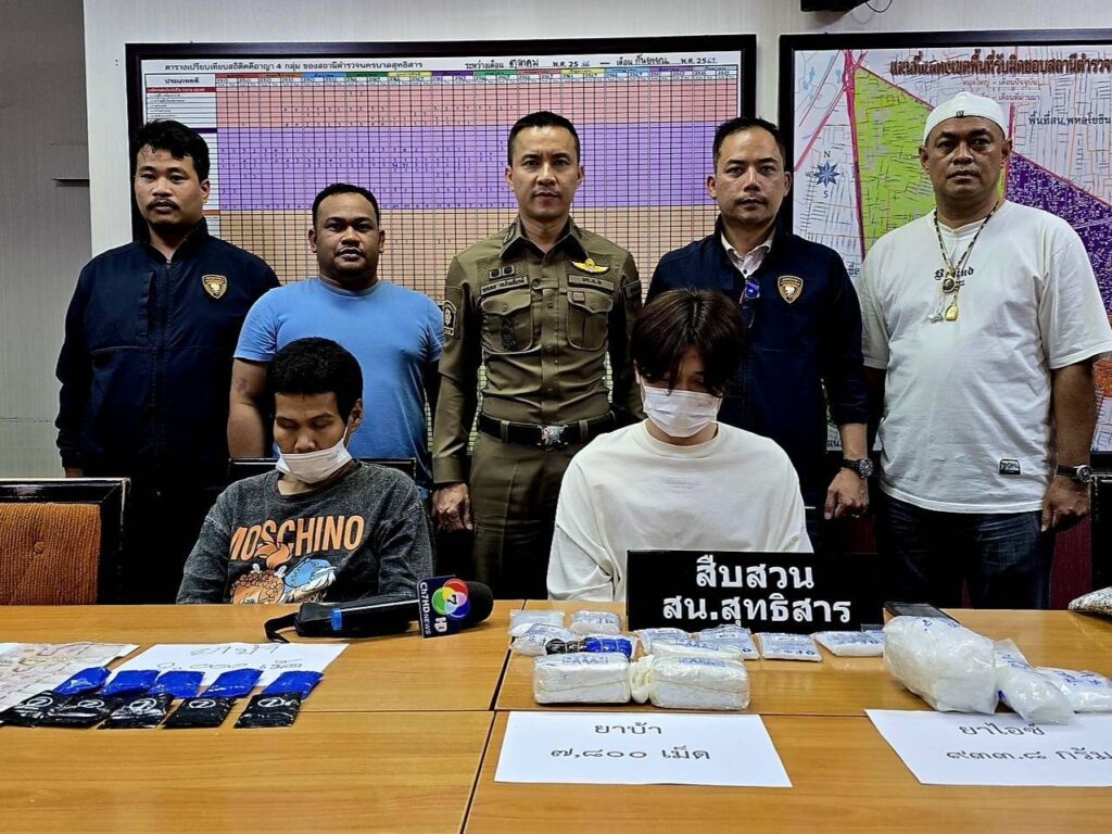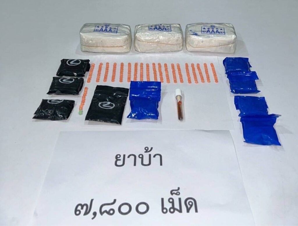 ยาเสพติดให้โทษประเภท 1 (เมทแอมเฟตามีนหรือยาบ้า) จำนวน 2,000 เม็ด และ นายอภิวัฒน์ หรือปิ้ง ตาสมัยเอี่ยม อายุ 37 ปี พร้อมด้วยของกลางยาเสพติดให้โทษประเภท 1 (เมทแอมเฟตามีนหรือยาบ้า) จำนวน 4 มัด รวม จำนวน 7,800 เม็ด ยาเสพติดให้โทษประเภท 1 (เมทแอมเฟตามีนหรือยาไอซ์) น้ำหนักชั่งพร้อมถุงประมาณ 933.8 กรัม ถุงซิปขนาดต่างๆ 150 ใบ เครื่องชั่งน้ำหนัก จำนวน 1 เครื่อง ถุงชา สีแดง จำนวน 1 ถุง ถุงชา สีเหลืองจำนวน 1 ถุง ถุงกระสอบทรงกระเป๋าถือหิ้ว สีขาว-ดำ ลายการ์ตูน จำนวน 1 ใบ โดยจับกุมได้บริเวณห้องเช่าไม่ทราบเลขที่ ซ.ประชาสงเคราะห์ 45 แขวงรัชดาภิเษก เขตดินแดง กรุงเทพมม ต่อเนื่อง ห้องไม่มีเลขที่ ใต้ถุนแฟลต57 ดินแดง ถนนประชาสงเคราะห์ แขวงดินแดง เขตดินแดง กรุงเทพฯ เมื่อวันที่ 7 ก.พ. เวลาประมาณ 22.30 น. ที่ผ่นนมา