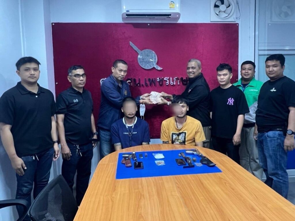 สายลับแจ้ง) โดยมีนายธรรพณ์กร หรือทีม ผู้ต้องหาที่ 2 (ทราบชื่อภายหลัง) ซึ่งเป็นน้องชายของผู้ต้องหาที่ 1 นั่งมาบริเวณ