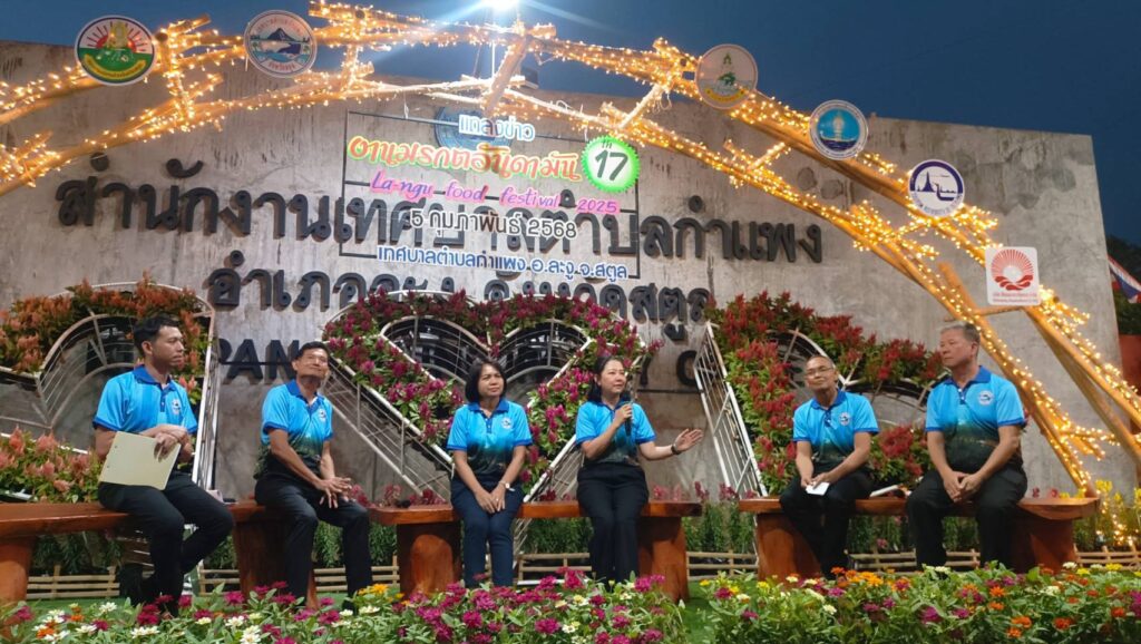 นางสาวดุษฎี พฤกษเศรษฐ รองผู้ว่าราชการจังหวัดสตูล ร่วมงานแถลงข่าวงานมรกตอันดามัน มหัศจรรย์อาหารอร่อยของดีที่ละงู ครั้งที่ 17 la-ngu food festival 2025 พร้อมด้วยนายวริช วิชิต รองผู้อำนวยการการท่องเที่ยวแห่งประเทศไทย สำนักงานสตูล นางสาวภัชกุล ตรีพันธ์ ท่องเที่ยวและกีฬาจังหวัดสตูล นายธีระพงษ์ คุ้มเคี่ยม นายอำเภอละงู นายวิชิต แซ่ลิ่ม นายกเทศมนตรีตำบลกำแพง ร่วมแถลงข่าว ทั้งนี้มีผู้รับฟังการแถลงข่าวฯ จำนวนมาก ณ บริเวณหน้าเทศบาลตำบลกำแพง อำเภอละงู จังหวัดสตูล