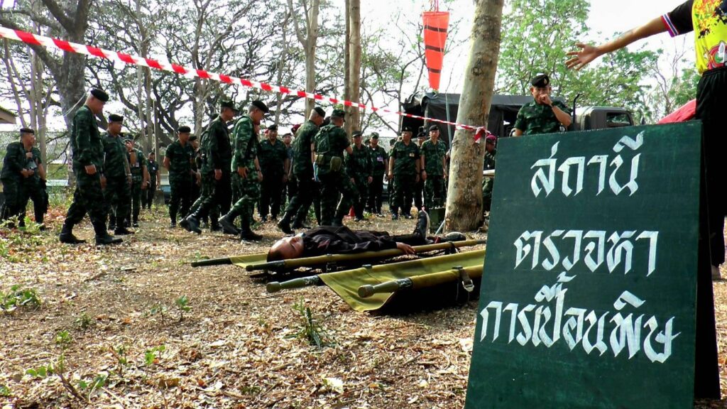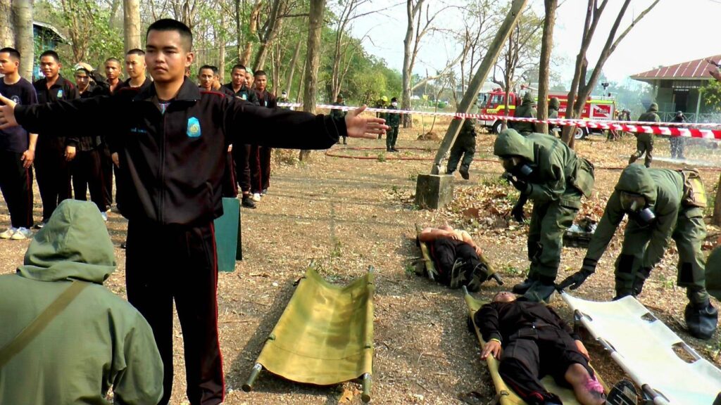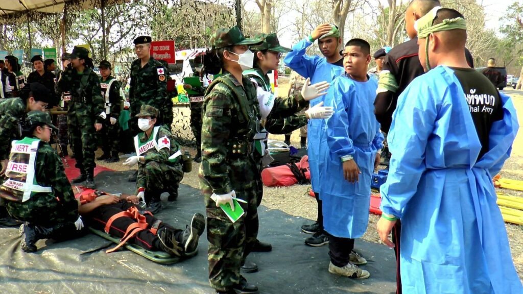 พลเอก พนา แคล้วปลอดทุกข์ ผู้บัญชาการทหารบก พร้อมคณะเดินทาง เดินทางตรวจเยี่ยมการฝึกปฏิบัติการร่วม พลเรือน ตำรวจ ทหาร ประจำปี 2568 (กฝร.พตท.68) ในพื้นที่ฝึกจังหวัดลพบุรี ประกอบด้วย กองพลรบพิเศษที่ 1 ค่ายเอราวัณ และ โรงพยาบาลอานันทมหิดล กรมแพทย์ทหารบก ต.เขาสามยอด อ.เมือง จ.ลพบุรี โดยมี พลโท ณรงค์ฤทธิ์ คัมภีระ ผู้บัญชาการหน่วยบัญชาการสงครามพิเศษ พร้อมด้วยคณะนายทหารผู้เกี่ยวข้องในด้านการฝึกให้การต้อนรับ พร้อมนำคณะตรวจเยี่ยมการฝึก ในสถานีฝึกต่างๆ ประกอบด้วย ภาคที่ตั้งของฝ่ายอำนวยการ การฝึกเสนาธิการ การฝึกอำนวยการยุทธ์ การฝึกแลกเปลี่ยน การฝึกภาคสนาม การสู้รบในสิ่งปลูกสร้าง และการฝึกด้านสาธารณะภัย การช่วยเหลือประชาชน ซึ่งการปฏิบัติวันนี้… กองอำนวยการฝึก ได้จำลองสถานการณ์ การเกิดเหตุเพลิงไหม้ในโรงงาน และเกิดการรั่วไหลของสารเคมี ซึ่งส่งผลกระทบกับผู้ประสพภัย และประชาชนในพื้นที่ใกล้เคียง เพื่อให้ผู้รับการฝึกจากทุกภาคส่วน ได้เข้าช่วยเหลือประชาชน ตามแผนที่ได้บูรณาการร่วมกัน อย่างมีประสิทธิภาพสูงสุด