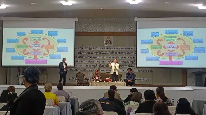 วันที่ ๑๐ – ๑๑ กุมภาพันธ์ ๒๕๖๘ ณโรงแรม ราชศุภมิตร (R.S. Hotel) อำเภอเมืองกาญจนบุรี จังหวัดกาญจนบุรี ว่าที่ร้อยตรีศุภมงคล บูชาถ่ายเทศ รองผู้ว่าราชการจังหวัดกาญจนบุรี ประธานเปิดการประชุมฯ นายอภินันท์ ศิวิโรจน์ ผู้อำนวยการกลุ่มส่งเสริมและบูรณาการการมีส่วนร่วม 3 กล่าวต้อนรับและวัตถุประสงค์ฯ นายพิศิษฐ์ พัฒนกิจจำรูญ ผู้อำนวยการสำนักงาน ป.ป.ช. ประจำจังหวัดกาญจนบุรี นางคิรากร นาคเอี่ยม เจ้าพนักงานป้องกันการทุจริตชำนาญการพิเศษกาญจนบุรี นายอภิพงศ์ พรหมมา เจ้าพนักงานป้องกันการทุจริตปฏิบัติการ นายชูศักดิ์ บัวสด ประธานคณะกรรมการเครือข่ายอาสาสมัครพิทักษ์ทรัพยากรธรรมชาติและสิ่งแวดล้อม