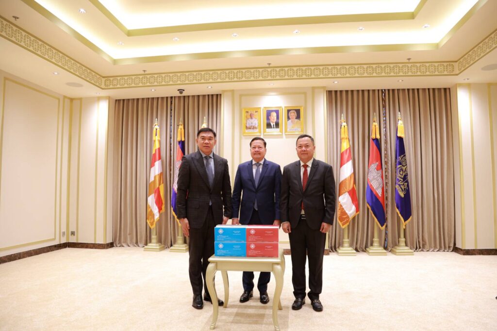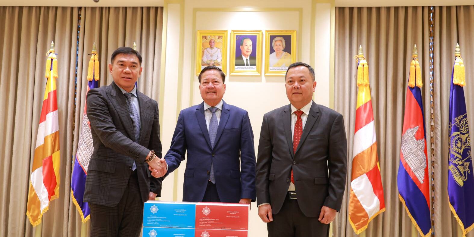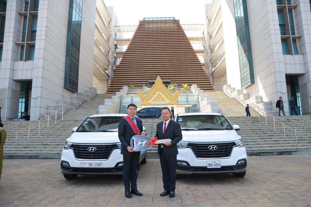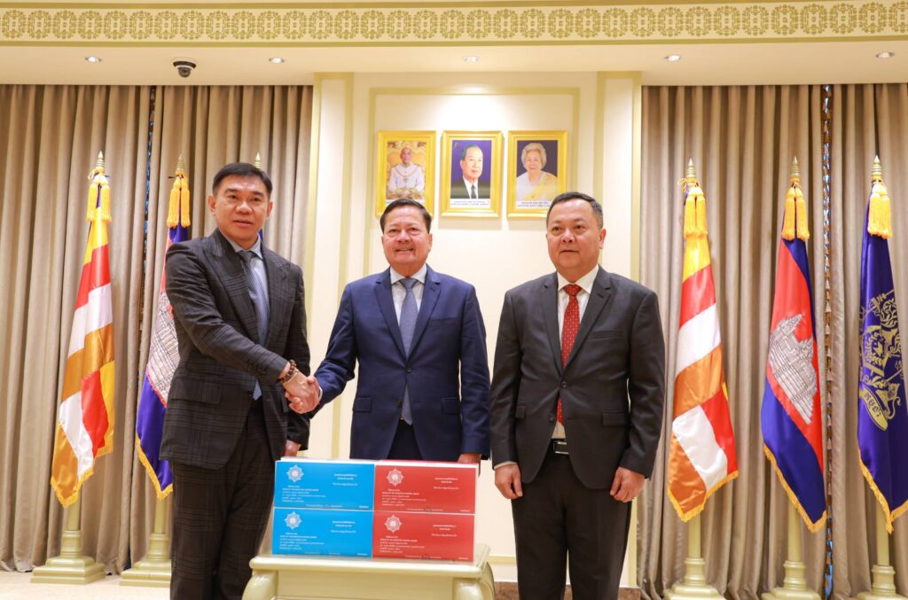และส่งมอบยานพาหนะ (รถตู้) และชุดตรวจสารเสพติดให้แก่กัมพูชา ณ รัฐสภาวิมานสันติภาพ (Peace Palace) กรุงพนมเปญ ราชอาณาจักรกัมพูชา