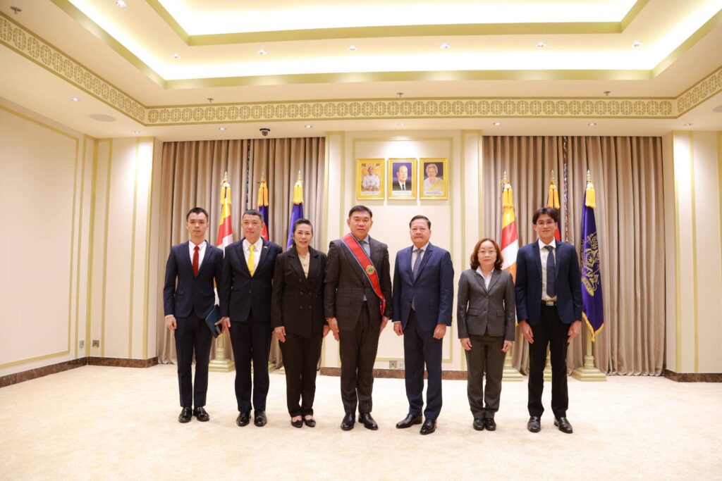 พลตำรวจโท ภาณุรัตน์ หลักบุญ เลขาธิการ ป.ป.ส. นำคณะผู้แทนไทยเข้าร่วมพิธีรับมอบเครื่องราชอิสริยาภรณ์สหไมตรี ชั้นมหาเสนา และพิธีส่งมอบยานพาหนะ (รถตู้) และชุดตรวจสารเสพติดให้แก่รัฐบาลกัมพูชา ณ รัฐสภาวิมานสันติภาพ (Peace Palace) กรุงพนมเปญ ราชอาณาจักรกัมพูชา