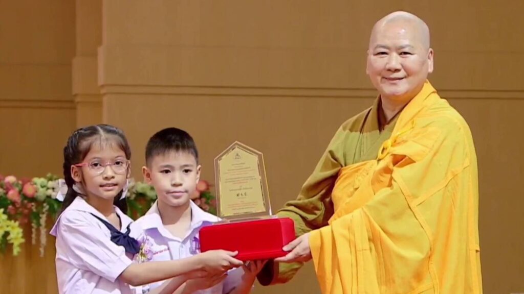 เมื่อเวลา 13.00 น. วันที่ 12 กุมภาพันธ์ 2568 ที่ห้องแก้วสารพัดนึกสภาธรรมกายสากล วัดพระธรรมกาย อำเภอคลองหลวง จังหวัดปทุมธานี สมาคมพุทธศาสตร์สากล ร่วมกับ ชมรมพุทธศาสตร์สากล ชมรมพุทธศาสตร์ของสถาบันอุดมศึกษา 35 แห่งทั่วประเทศ มูลนิธิธรรมกาย และชมรมส่งเสริมศีลธรรมเพื่อสันติภาพโลก จัดพิธีมอบโล่พระราชทาน สมเด็จพระกนิษฐาธิราชเจ้า กรมสมเด็จพระเทพรัตนราชสุดาฯ สยามบรมราชกุมารี และโล่เกียรติยศแก่ผู้ชนะเลิศ ในโครงการตอบปัญหาธรรมะ “ทางก้าวหน้า” ครั้งที่ 42 และ รางวัลโล่วัชรเกียรติยศให้แก่ผู้ชนะเลิศในโครงการสอบตอบปัญหาศีลธรรมเพื่อสันติภาพโลก (World-PEC) ครั้งที่ 18