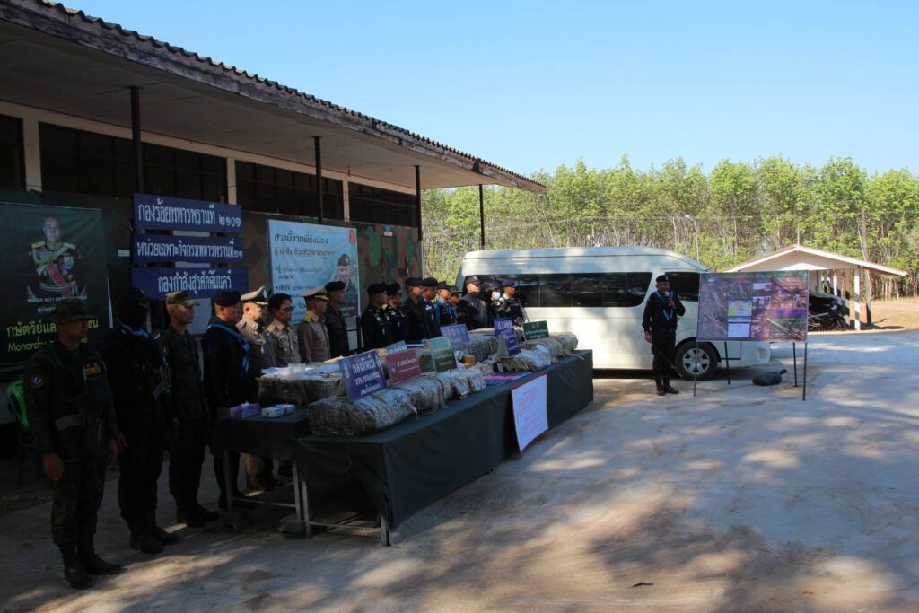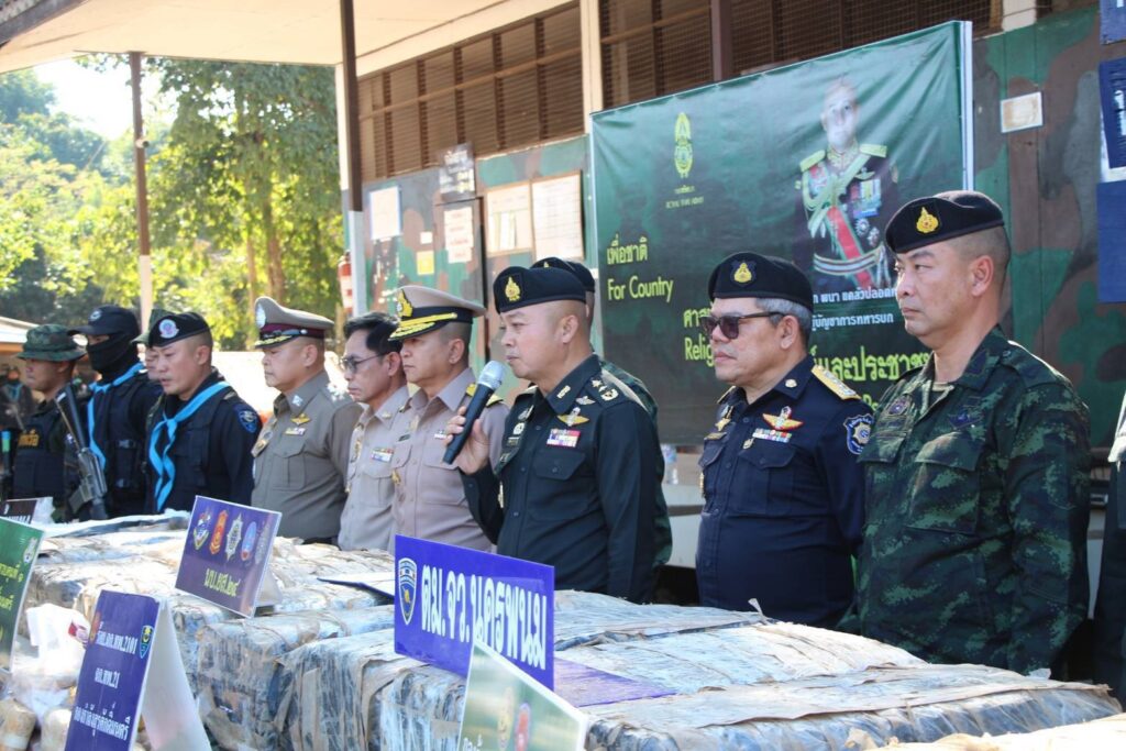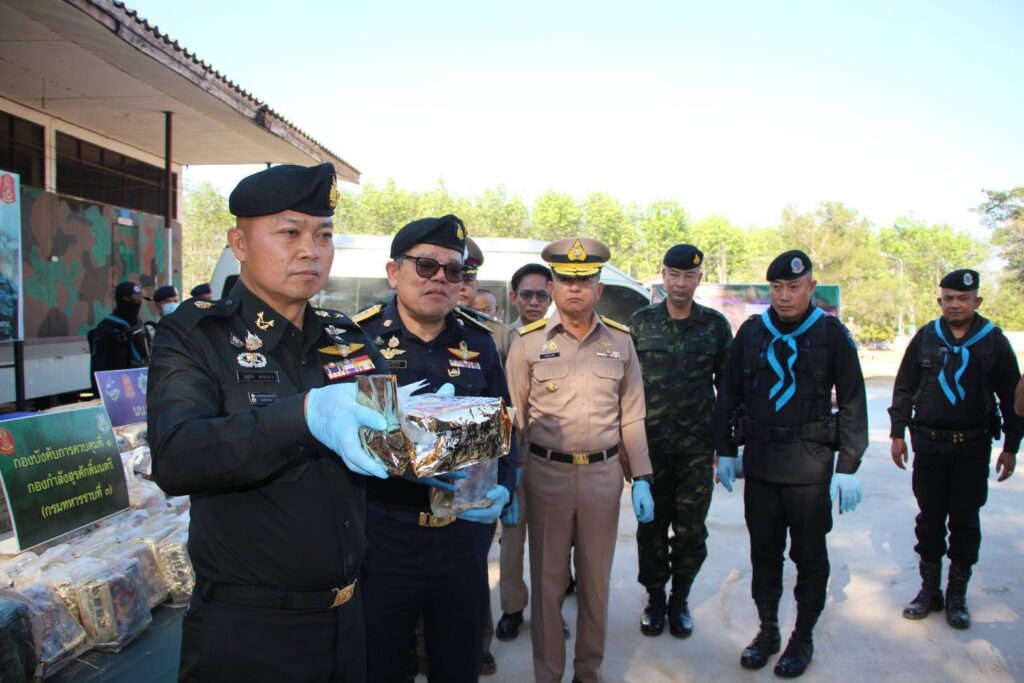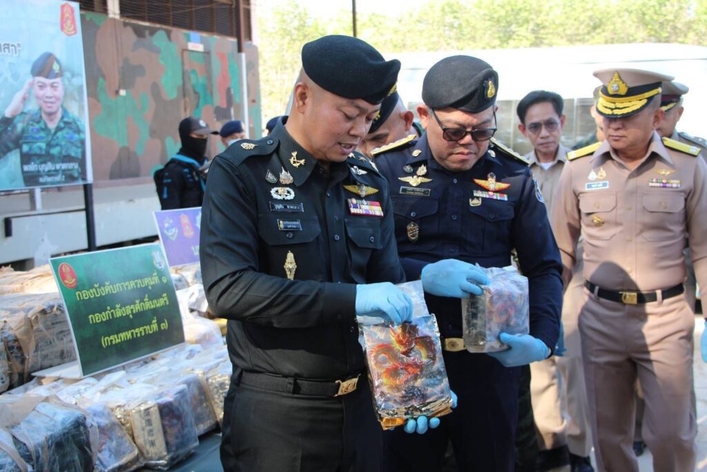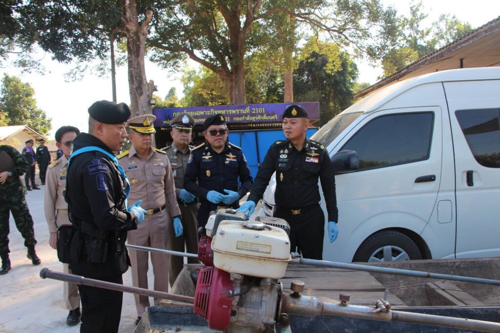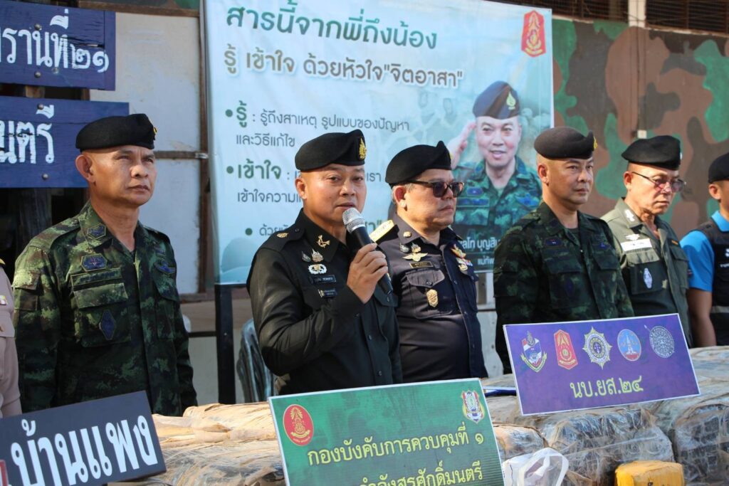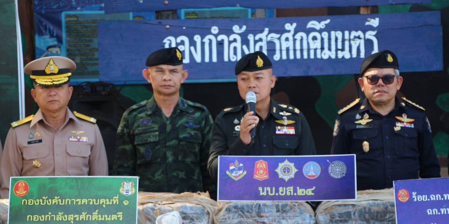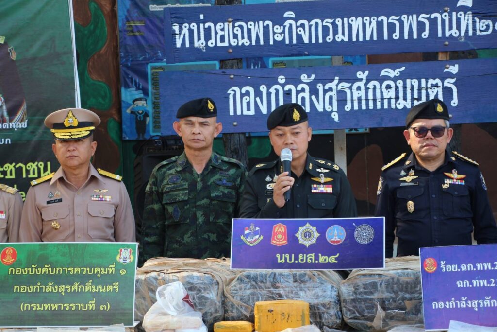 วันที่ 12 กุมภาพันธ์ 68 เวลา 15.00 น. ที่กองร้อยเฉพาะกิจทหารพรานที่ 2101 บ้านปากห้วยม่วง ตำบลนาเข อำเภอบ้านแพง จังหวัดนครพนม พลโทบุญสิน พาดกลาง แม่ทัพภาคที่ 2/ ผู้บัญชาการหน่วยบัญชาการสกัดกั้นและปราบปรามยาเสพติดสารตั้งต้น และเคมีภัณฑ์ชายแดนภาคตะวันออกเฉียงเหนือ (มทภ.2/ผบ.นบ.ยส.24) พร้อมด้วยพลตรี สุคนธรัตน์ ชาวพงษ์ ผู้บัญชาการกองกำลังสุรศักดิ์มนตรี, พลเรือตรีณรงค์ เอมดี ผู้บัญชาการหน่วยเรือรักษาความสงบเรียบร้อยตามลำน้ำโขง,พันเอกศิวดล ยาคล้าย ผู้บังคับการกองบังคับการควบคุมที่ 1 ( ร.3 ), พันเอกอินทราวุธ ทองคำ ผู้บังคับหน่วยเฉพาะกิจกรมทหารพรานที่ 21,นายคณิศร ภาพีรนนท์ ผู้อำนวยการสำนักงานป้องกันและปราบปรามยาเสพติด ภาค 4 , นายอำเภอบ้านแพง พร้อมกับหน่วยงานความมั่นคงที่เกี่ยวข้องร่วมกันแถลงผลการจับกุมผู้ต้องหาชาว สปป.ลาว 3 ราย พร้อมตรวจยึดยาเสพติดประเภท 1 ยาไอซ์ จำนวน 16 กระสอบ 658 กิโลกรัม/ก้อน และยาบ้า 58 มัด จำนวน 116,000 เม็ด รถตู้ 1 คัน เรือกีบติดเครื่องยนต์ 2 ลำ ที่บริเวณริมตลิ่งแม่น้ำโขงบ้านแพงใต้ ตำบลบ้านแพง อำเภอบ้านแพง จังหวัดนครพนม โดยร้อยโท วันชาติ เหมือนปืน ผู้บังคับกองร้อยเฉพาะกิจทหารพรานที่ 2101 หน่วยเฉพาะกิจ กรมทหารพรานที่ 21 ได้นำกำลังพลหน่วยขึ้นตรงกองบังคับการควบคุมที่ 1 กองกำลังสุรศักดิ์มนตรี ได้รับแจ้งว่าจะมีการลักลอบลำเลียงยาเสพติด จากฝั่ง สปป.ลาวเข้ามายังพื้นที่ฝั่งไทยเพื่อนำเข้าสู่พื้นที่ตอนใน บริเวณริมตลิ่งแม่น้ำโขงบ้านแพงใต้ ตำบลบ้านแพง อำเภอบ้านแพงจึงได้ประสานกำลังกับหน่วยงานฝ่าวความมั่นคงที่เกี่ยวข้องซุ่มเฝ้าตรวจ พบเรือกลีบ จำนวน 2 ลำรถยนต์(รถตู้)จำนวน 1 คันพร้อมผู้ต้องหา จำนวน 3 คน เป็นชาวสปป.ลาว ประกอบด้วย ท้าวดำ (ไม่ทราบนามสกุล) อายุ 16 ปี บ้านนาข่า เมืองคูนคำ แขวงคำม่วน สปป.ลาว-ท้าว ลี (ไม่ทราบนามสกุล) อายุ 17 ปี บ้านทางแยกหลักซาว เมืองปากกะดิ่ง แขวงบอลิคำไซ สปป.ลาว และท้าวพง อภัยโส อายุ 30 ปี อยู่บ้านดอน เมืองปากกระดิ่ง แขวงบอลิคำไซ สปป. ลาว พร้อมของกลาง 4 รายการ คือยาไอซ์ จำนวน 16 กระสอบ น้ำหนัก 658 กิโลกรัม/ก้อน,ยาบ้า 58 มัด 116,000 เม็ด,เรือกลีบเล็กพร้อมเครื่องยนต์ จำนวน 2 ลำ-รถยนต์ (รถตู้) จำนวน 1 คัน ทางหน่วยได้นำของกลางมาตรวจนับอีกครั้ง ที่กองร้อยเฉพาะกิจทหารพรานที่ 2101 หน่วยเฉพาะกิจกรมทหารพรานที่ 21 และนำส่งพนักงานสอบสวน สภ.บ้านแพง ดำเนินคดีตามกฎหมายต่อไปจากการสอบถามผู้ต้องหาทั้งสามคนรับสารภาพว่าได้รับค่าจ้าจากนายทุนชาวลาวให้นำของกลางมาส่งที่ฝั่งไทยแลกค่าจ้างคนละ 20,000 บาทก่อนจะมาถูกจับกุมเสียก่อน