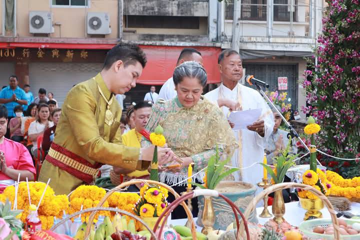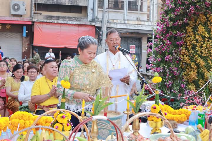นางวิลาทิพย์ สละชีพ นายกเทศมนตรีตำบลท่าศาลา พร้อมด้วยคณะผู้บริหาร สมาชิกสภาเทศบาล พนักงานเทศบาลตำบลท่าศาลา และประชาชน