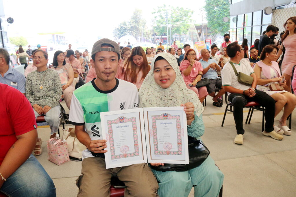 กรุงเทพฯ, 14 กุมภาพันธ์ 2568 – บริษัท ซูเลียน (ประเทศไทย) จำกัด ร่วมกับ สำนักงานอำเภอบางบัวทอง จังหวัดนนทบุรี จัดกิจกรรม “จดทะเบียนสมรส วันวาเลนไทน์ 2025” โดยกิจกรรมจัดขึ้น ณ โครงการเฟิร์ส อเวนิว คอมมูนิตี้มอลล์ อำเภอบางบัวทอง จังหวัดนนทบุรี เพื่อเปิดโอกาสให้ทุกคู่รักได้เฉลิมฉลองวันแห่งความรักด้วยความอบอุ่นและมั่นใจ พร้อมมอบรางวัลพิเศษเงินสด 5,000 บาท จำนวน 2 รางวัล และสร้อยคอทองคำหนึ่งสลึง 1 รางวัล เป็นของขวัญพิเศษให้กับคู่รักที่เข้าร่วมกิจกรรมจดทะเบียนสมรสในครั้งนี้ โดยมีคู่รักจูงแขนมาจดทะเบียนสมรสจำนวน 52 คู่