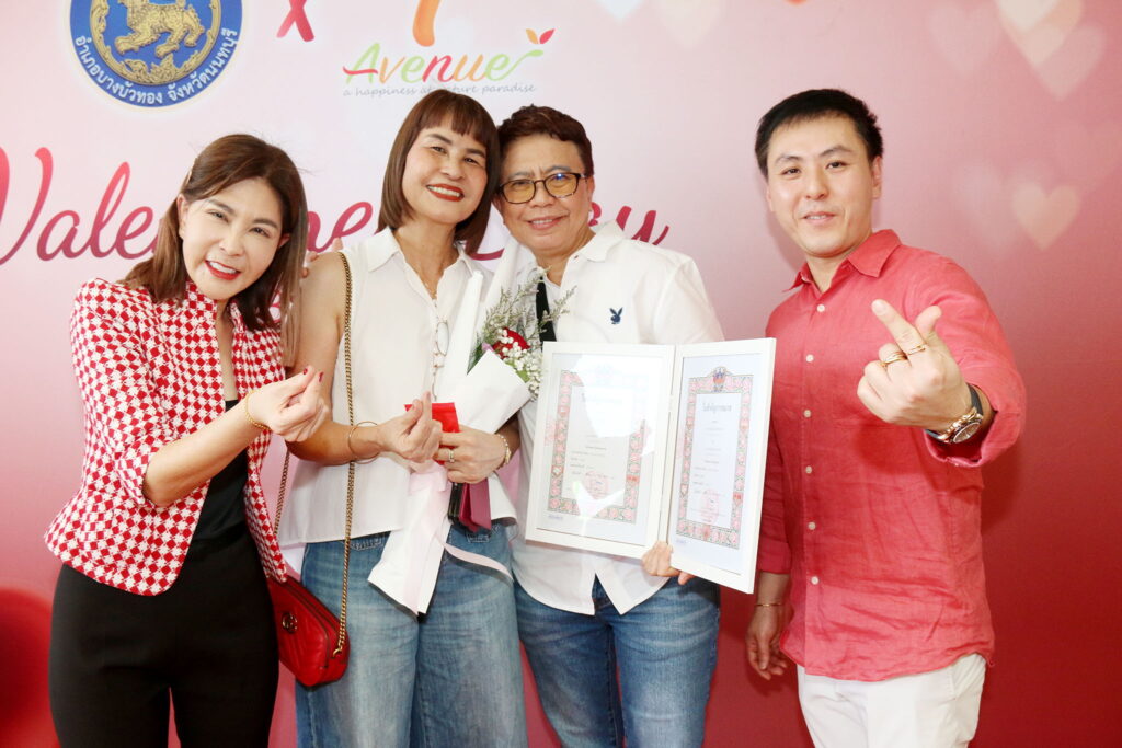 งานนี้ได้รับเกียรติจาก นายไพโรจน์ จึงธนาเจริญ นายอำเภอบางบัวทอง พร้อมด้วย นางสาวอัยรินทร์ จุลล์จักรวงศา กรรมการผู้จัดการ บริษัท ซูเลียน (ประเทศไทย) จำกัด มาร่วมแสดงความยินดีและเป็นสักขีพยานให้กับทุกคู่รักที่จดทะเบียนสมรส