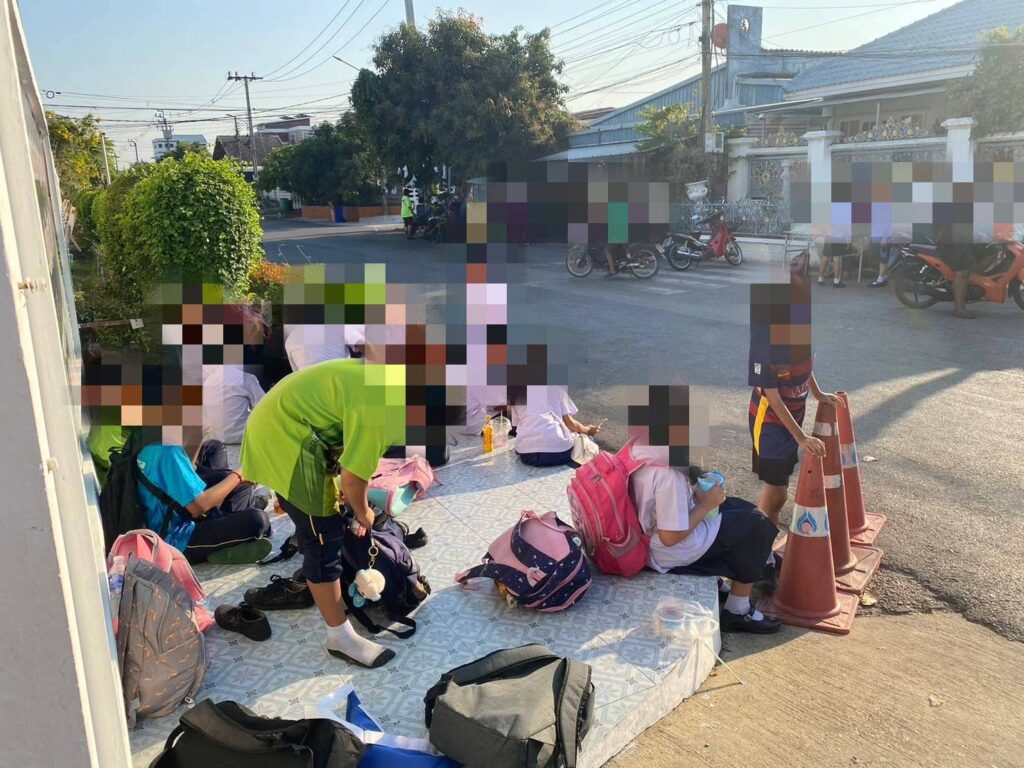 ขณะที่เด็กบางคนผู้ปกครองยังไม่มารับต้องออกมานั่ง-นอนรอพ่อแม่อยู่หน้าโรงเรียน ริมถนน และออกมาอยู่แถวริมคลอง โดยมีรปภ.เป่านกหวีดไล่เด็กๆ ให้ออกมานอกโรงเรียนทำให้เด็กทุกคนต้องนั่งตากแดดเสี่ยงกับอันตรายบนถนนที่มีรถวิ่งผ่าน และเสี่ยงตกน้ำที่เป็นคลองอยู่ข้างโรงเรียน นอกจากนี้ยังมีเรื่องอาหารของเด็กนักเรียนในมือเช้า มื้อกลางวันที่ผู้ปกครองห่วงเรื่องคุณภาพอาหารและปริมาณที่ไม่เพียงพอกับเด็กๆ
