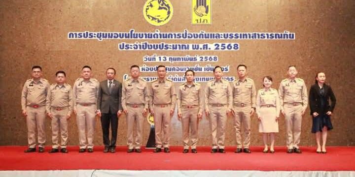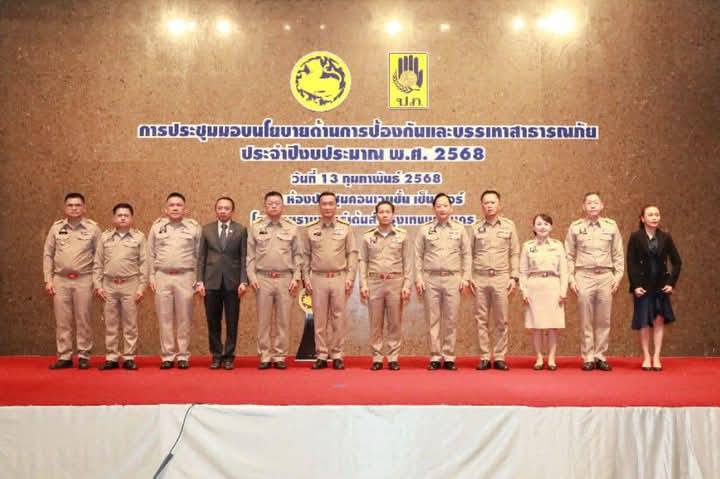 เมื่อวันที่ 13 ก.พ. 68 เวลา 10.30 น. ที่ห้องประชุม convention center โรงแรมรามา การ์เด้นส์ กรุงเทพมหานคร นายทรงศักดิ์ ทองศรี รัฐมนตรีช่วยว่าการกระทรวงมหาดไทย เป็นประธานการประชุม มอบนโยบายด้านการป้องกันและบรรเทาสาธารณภัย ประจำปีงบประมาณ พ.ศ. 2568 เพื่อกำหนดทิศทาง เชิงนโยบายและกรอบแนวทางการปฏิบัติในการป้องกันและบรรเทาสาธารณภัยของประเทศที่เป็นระบบสอดคล้องกับความเปลี่ยนแปลงในหลากหลายมิติและพร้อมรับสาธารณภัยที่รุนแรงมากขึ้นในอนาคต โดยมี นายสมเจตน์ ลิมปะพันธุ์ ที่ปรึกษารัฐมนตรีว่าการกระทรวงมหาดไทย นายขจร ศรีชวโนทัย รองปลัดกระทรวงมหาดไทย นายภาสกร บุญญลักษม์ อธิบดีกรมป้องกันและบรรเทาสาธารณภัย นายพรพจน์ เพ็ญพาส อธิบดีกรมที่ดิน นายนฤชา โฆษาศิวิไลซ์ อธิบดีกรมส่งเสริมการปกครองท้องถิ่น นายพงษ์นรา เย็นยิ่ง อธิบดีกรมโยธาธิการและผังเมือง นางสาวชัชดาพร บุญพีระณัช นายสหรัฐ วงศ์สกุลวิวัฒน์ รองอธิบดีกรมป้องกันและบรรเทาสาธารณภัย นายวินัย โตเจริญ รองอธิบดีกรมการปกครอง ผู้บริหารกรมป้องกันและบรรเทาสาธารณภัย ผู้อำนวยการศูนย์ป้องกันและบรรเทาสาธารณภัยเขต ทุกเขต หัวหน้าสำนักงานป้องกันและบรรเทาสาธารณภัยจังหวัด ทุกจังหวัด ข้าราชการและเจ้าหน้าที่ ปภ. เข้าร่วมประชุมฯ