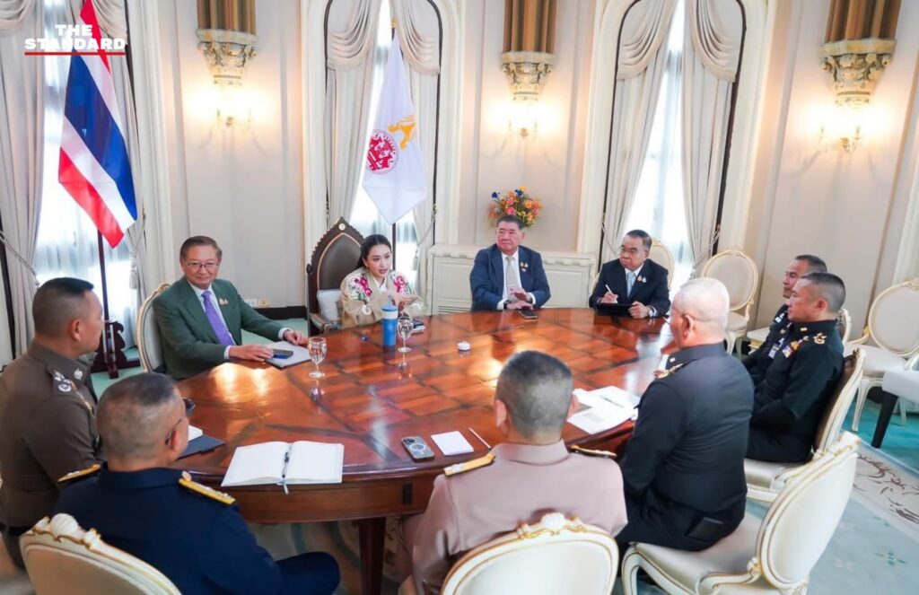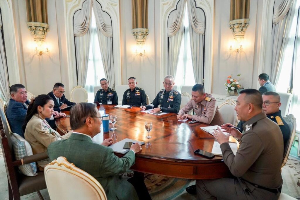 นางสาวแพทองธาร ชินวัตร นายกรัฐมนตรี เรียฝ่ายความมั่นคง นายภูมิธรรม เวชยชัย รอง นรม./รมว.กห. , พลเอก ณัฐพล นาคพาณิชย์ รัฐมนตรีช่วยว่าการกระทรวงกลาโหม, พลเอก สนิธชนก สังขจันทร์ ปลัดกระทรวงกลาโหม, พลเอก ทรงวิทย์ หนุนภักดี ผู้บัญชาการทหารสูงสุด, พลเอก พนา แคล้วปลอดทุกข์ ผู้บัญชาการทหารบก, พลอากาศเอก พันธ์ภักดี พัฒนกุล ผู้บัญชาการทหารอากาศ พลเรือเอก จิรพล ว่องวิทย์ ผู้บัญชาการทหารเรือ พลตำรวจเอก กิตติ์รัฐ พันธุ์เพ็ชร์ ผู้บัญชาการตำรวจแห่งชาติ เข้าร่วมประชุม ณ ทำเนียบรัฐบาล