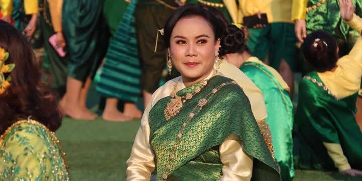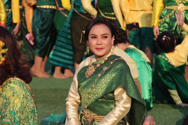 นางรำที่กำลังแสดงท่ารำอย่างสวยงามอ่อนช้อยงดงามสมพระเกียรติ