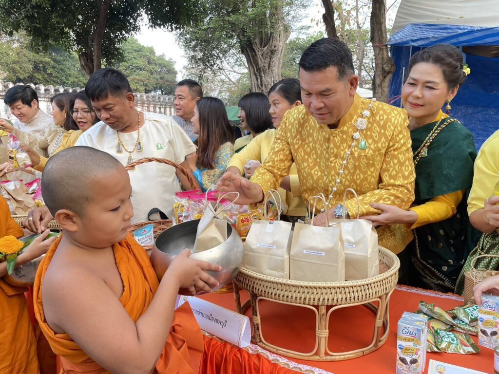 ร่วมพิธีทำบุญตักบาตรข้าวสารอาหารแห้ง ถวายแด่พระสงฆ์ จำนวน 60 รูป โดยได้รับความเมตตาจาก ท่านเจ้าคุณพระกิตติญาณเมธี เจ้าคณะอำเภอเมืองลพบุรี ฝ่ายธรรมยุต เป็นประธานฝ่ายสงฆ์ เดินออกรับบิณฑบาต เนื่องในวันคล้ายวันพระราชสมภพ สมเด็จพระนารายณ์มหาราช ประจำปี 2568 เพื่อเป็นความเป็นสิริมงคลแก่ตนเอง และเมืองลพบุรี พร้อมทั้งร่วมกัน ประกอบพิธีสงฆ์ และบวงสรวง ดวงพระวิญญาณสมเด็จพระนารายณ์มหาราช ณ พระที่นั่งดุสิตสวรรค์ธัญญมหาปราสาท ภายใน พระนารายณ์ราชนิเวศน์ ซึ่งเป็นสถานที่ศักดิ์สิทธิ์สำคัญของจังหวัดลพบุรี อายุ กว่า 300 ปี ซึ่งเป็นที่เสด็จออกรับคณะราชทูตต่างประเทศ ในสมัยสมเด็จพระนารายณ์มหาราช และถือเป็นพระที่นั่งองค์เดียว ที่อยู่นอกกรุงศรีอยุธยา ที่มีหลังคาเป็นทรงมณฑปแหลม มหาปราสาท ศิลปกรรมแบบไทยผสมผสานกับฝรั่งเศส