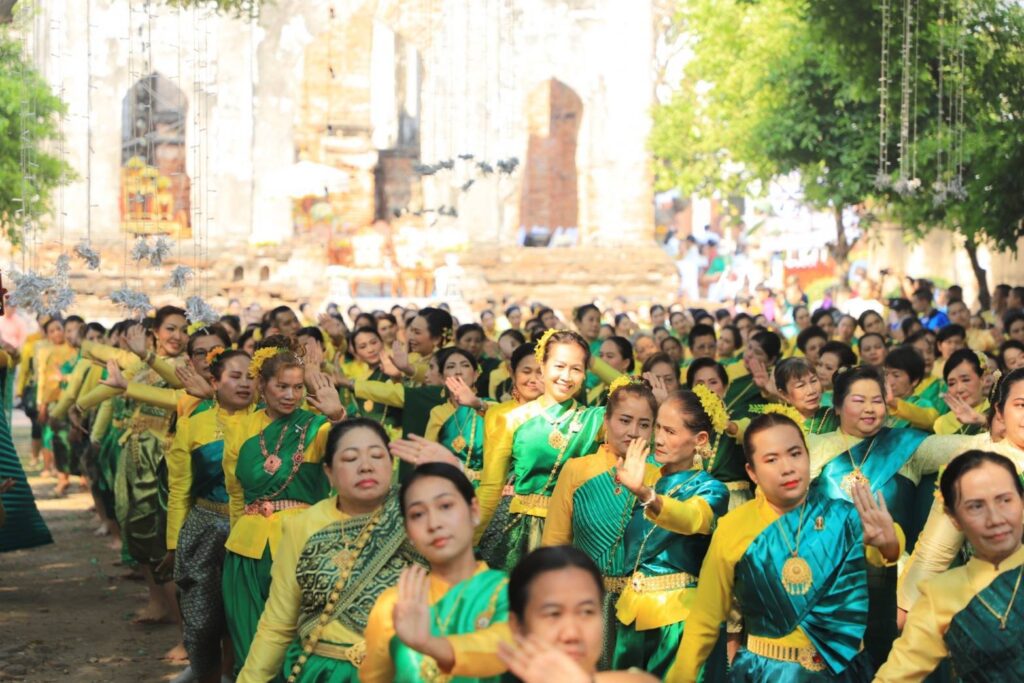 นุ่งโจง ห่มสไบ แต่งไทย ทำบุญตักบาตรถวายเป็นพระราชกุศลเพื่อน้อมรำลึกในพระมหากรุณาธิคุณของพระองค์ พร้อมทั้งรำบวงสรวง พระนารายณ์มหาราชและพระบาทสมเด็จพระจอมเกล้าเจ้าอยู่หัว