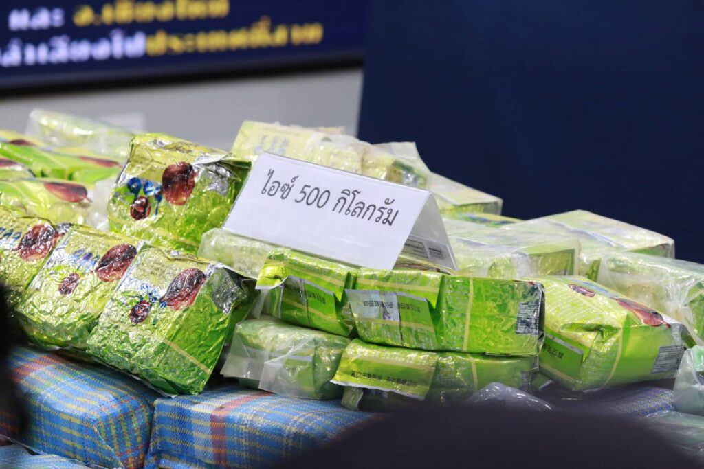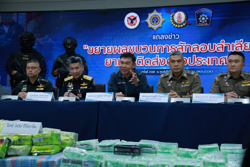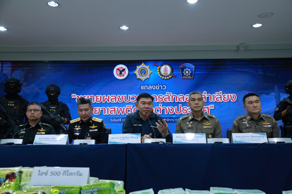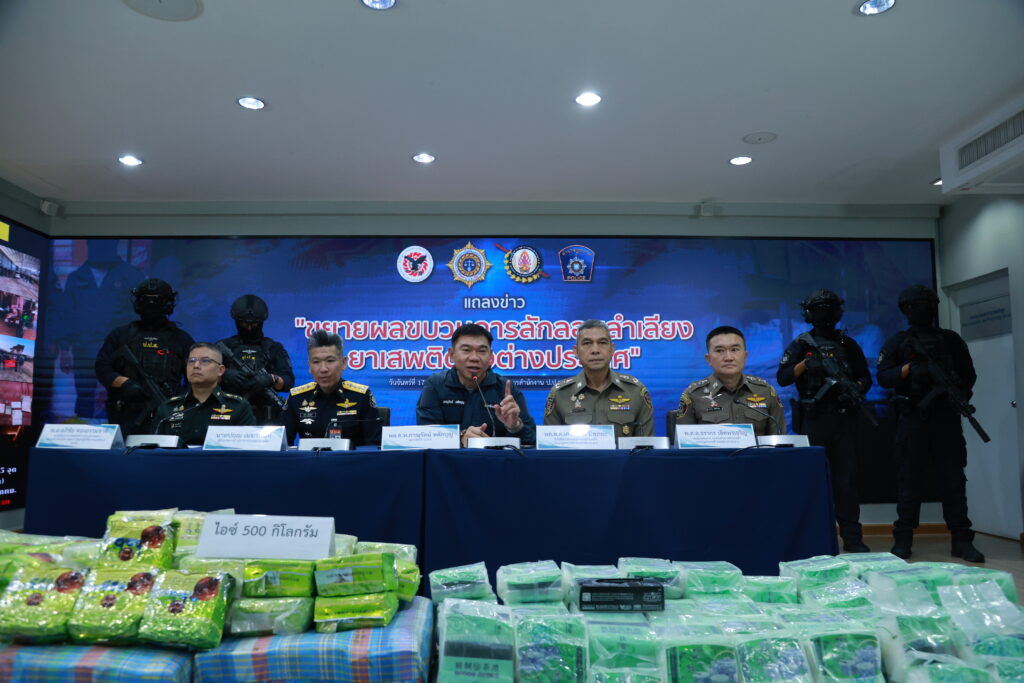 ผู้บังคับการกองบังคับการตำรวจน้ำ กองบัญชาการตำรวจสอบสวนกลาง,พ.อ.อภิชัย ทองธรรมชาติ รองผู้บัญชาการหน่วยข่าวกรองทางทหาร หน่วยข่าวกรองทางทหาร ศูนย์ปฏิบัติการกองทัพบก (ขกท.) แถลงผลการจับกุม ขบวนการลักลอบลำเลียงยาเสพติดส่งต่างประเทศ จับกุมผู้ต้องหา 3 คน พร้อมไอซ์ 500 กิโลกรัม ซึ่งลักลอบลำเลียงยาเสพติดมาจากชายแดนพื้นที่สามเหลี่ยมทองคำ โดยใช้ประเทศไทยเป็นทางผ่านเตรียมลำเลียงไปยังประเทศที่สาม เหตุเกิดที่ อ.ตาคลี จ.นครสวรรค์ ต่อเนื่อง อ.บางใหญ่ จ.นนทบุรี และ จ.เชียงใหม่ ขยายผลตรวจค้น 5 จุด (โกดัง และ บ้านพัก) ในพื้นที่ จ.เชียงราย และ กทม. พบไอซ์จำนวนหนึ่ง พร้อมอุปกรณ์การเสพ (ที่บ้านผู้ต้องหาที่ 2) ตรวจยึดทรัพย์สิน อาทิเช่น ที่ดินพร้อมสิ่งปลูกสร้าง ยานพาหนะ ทองรูปพรรณ เงินสด รวมมูลค่าประมาณ 9 ล้านบาท